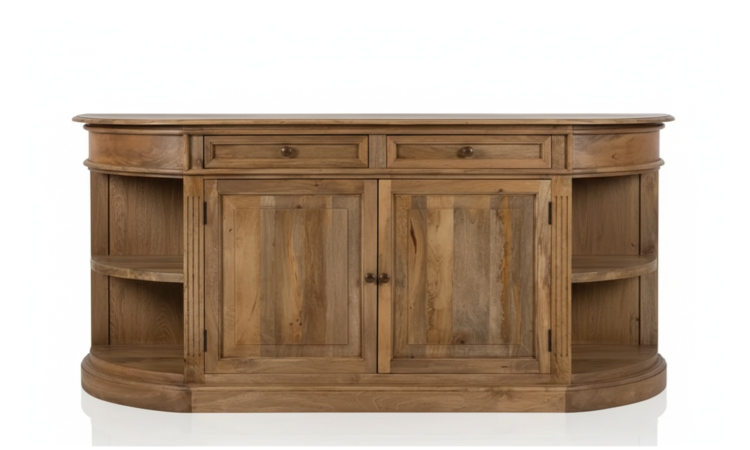 Este Aparador es la mezcla perfecta entre diseño funcional y estética natural. Fabricado en madera de mango maciza en acabado natural, su veta única y tonos cálidos aportan una sensación de calidez y autenticidad a cualquier espacio.