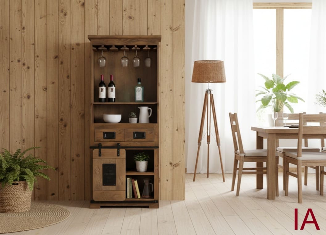 📢 MUEBLE BAR ADYA: MANGO MACIZO. ¡LA PIEZA VERTICAL QUE TE CONVIERTE EN EL ANFITRIÓN DEFINITIVO! 🏭🥃