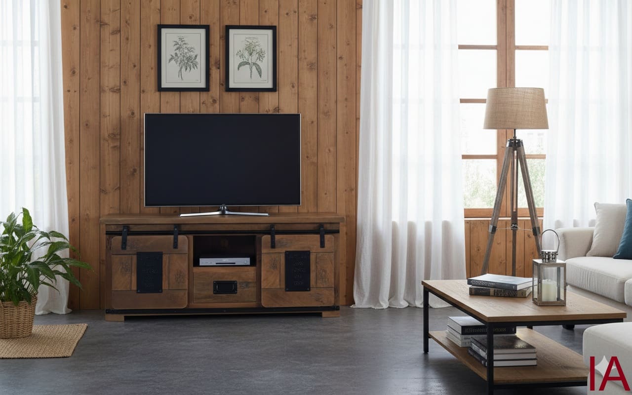 📢 MUEBLE TV ADYA (130 CM): MANGO MACIZO. PUERTAS CORREDERAS DE IMPACTO. ¡EL ESTILO INDUSTRIAL CONCENTRADO QUE DOMINA TU ESPACIO! 🏭📺