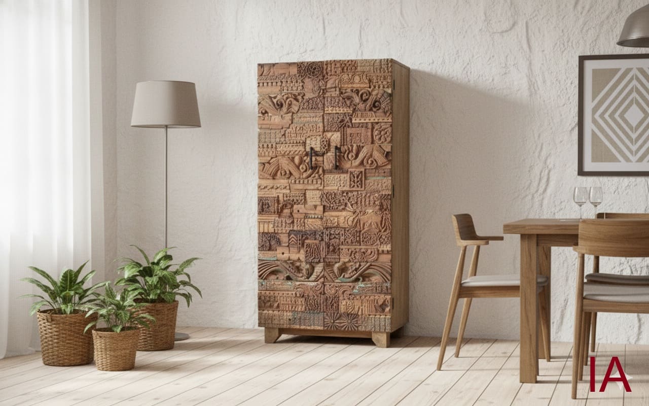 ¿Tu almacenamiento vertical es aburrido y sin alma? 🤯 La ALACENA AJIT no es un armario; es una TORRE ESCULTÓRICA que utiliza la madera recuperada para crear un MOSAICO CAÓTICO Y EXQUISITO de tallas ancestrales. Si buscas una pieza agresiva, funcional y que grite exclusividad, ¡DEBES ADQUIRIR ESTA OBRA MAESTRA AHORA MISMO!