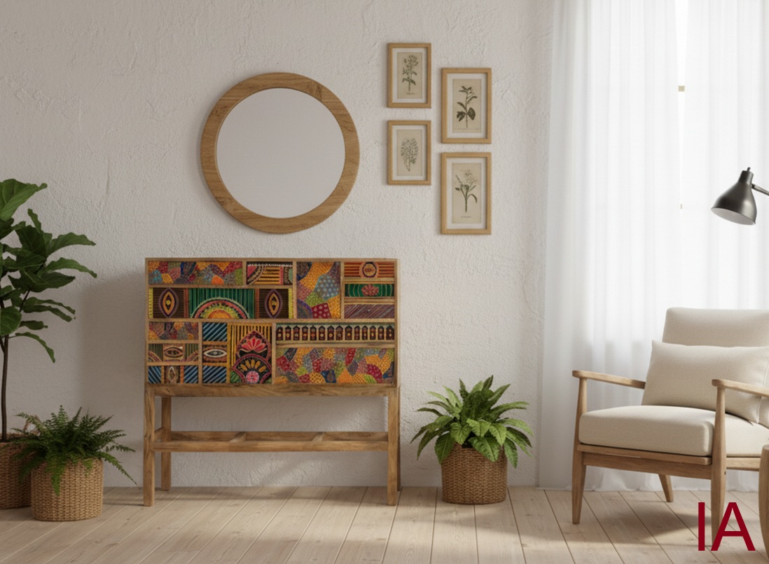 Elige la Consola AKU porque tu hogar merece CALIDAD Y CARÁCTER. Es la solución perfecta para añadir un punto focal BOHEMIO, ÉTNICO y ARTÍSTICO que habla de ti y de tu gusto exquisito. En el recibidor, será tu tarjeta de presentación. En el salón, el toque de color y almacenaje. ¡Estás invirtiendo en ARTE funcional que eleva todo el espacio! No te conformes con lo estándar; DEMUESTRA TU ESTILO con la AKU. 🗣️