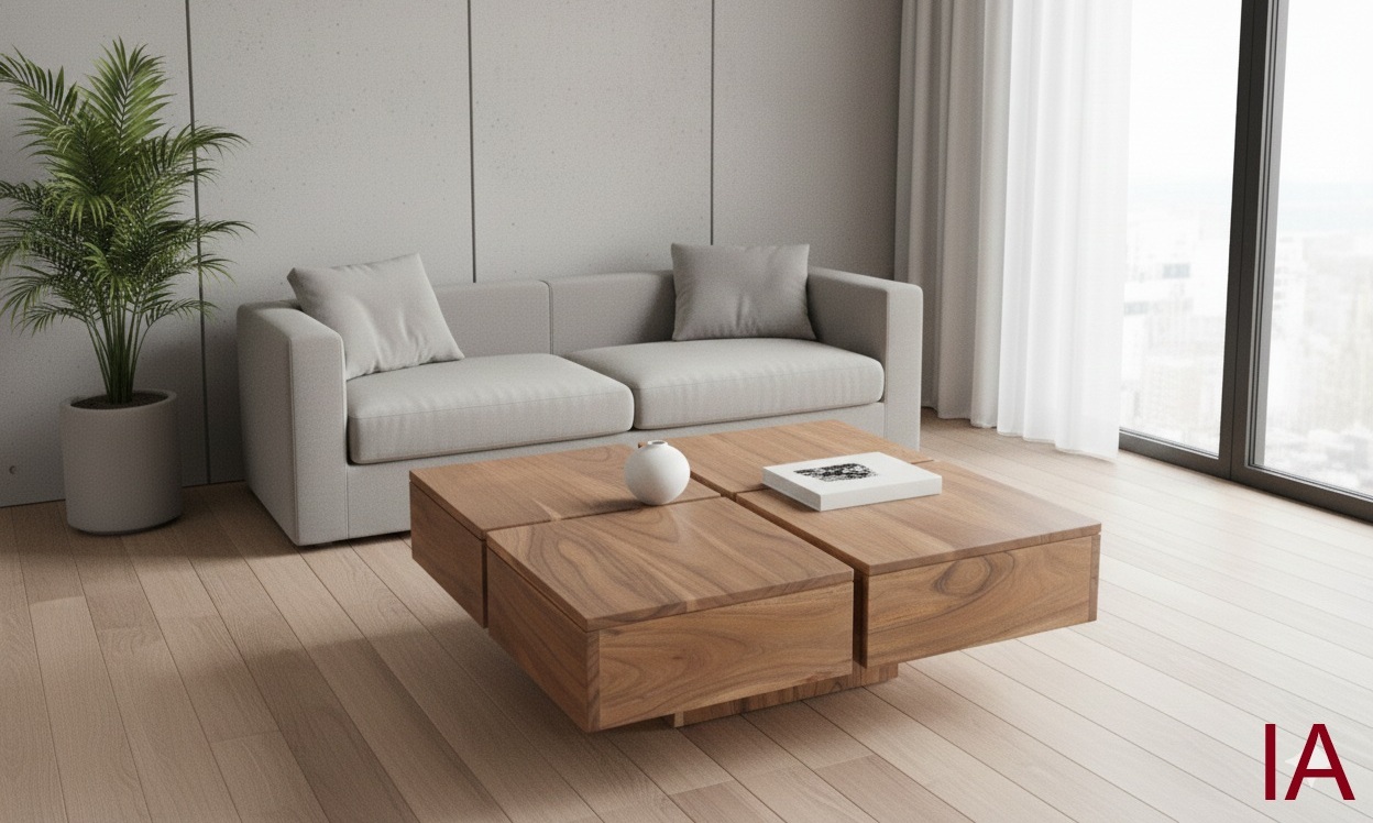 📢 MESA DE CENTRO ARCH: ACACIA MACIZA. DISEÑO CUBISTA 4X4. ¡LA EXCLUSIVIDAD GEOMÉTRICA DE ÚLTIMA TENDENCIA! ⬛️🌳