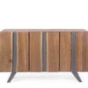 El mueble se sostiene sobre patas de metal inclinadas, que le otorgan estabilidad y un aire industrial contemporáneo. En su interior, cuenta con compartimentos con baldas, perfectos para mantener el orden en tu salón, comedor o entrada.