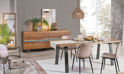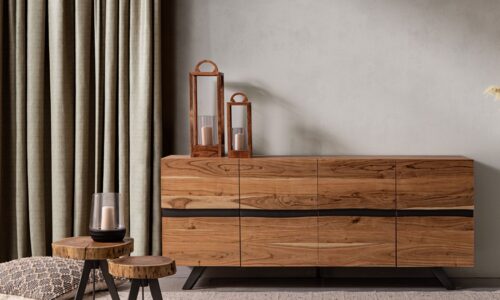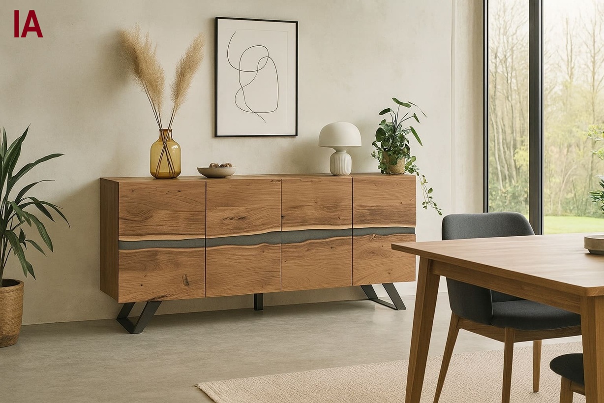 Este aparador es perfecto para salones, comedores o entradas que buscan combinar el diseño contemporáneo con la calidez de los materiales naturales.