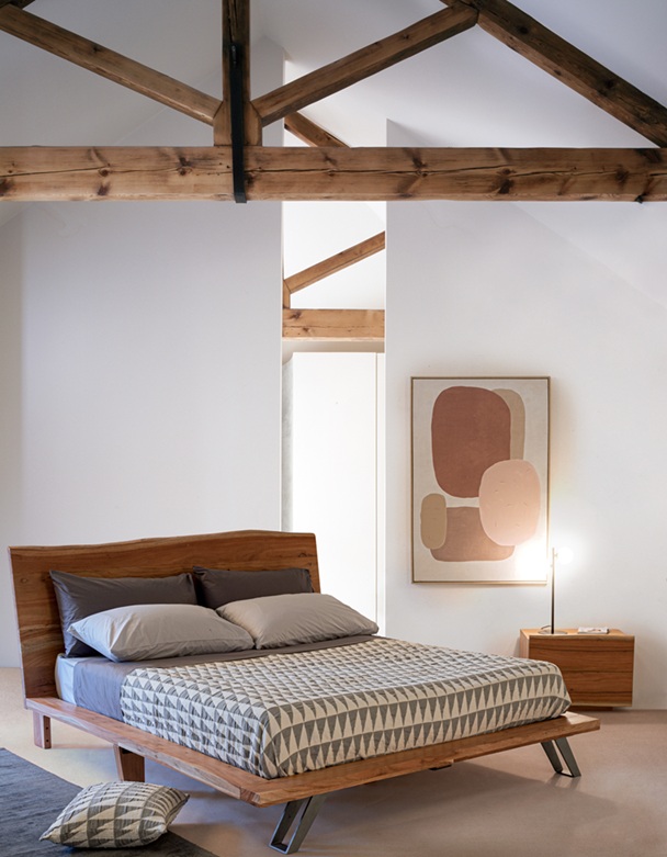 Cabecera de madera maciza con el canto superior sin cantear (forma original del tronco, ideal para apoyar almohadas o disfrutar de una buena lectura. Por su forma, cada pieza es única y diferente.