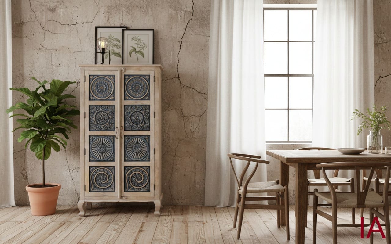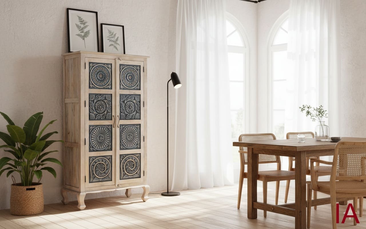 ¿Sigues conformándote con muebles planos, industriales y sin vida? 🤯 Es hora de dar un golpe de AUTORIDAD DECORATIVA, SOLIDEZ ARTESANAL Y EXCLUSIVIDAD ABSOLUTA. El ARMARIO BADAL no es solo un mueble de almacenamiento; es una OBRA DE ARTE VERTICAL que fusiona la nobleza de la madera de mango blanqueada con un trabajo de tallado a mano que roza la perfección artística. Si buscas una pieza agresiva en diseño pero impecable en su refinamiento rústico, ¡TIENES QUE ADQUIRIR ESTA JOYA AHORA MISMO!