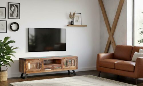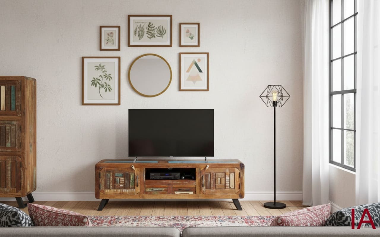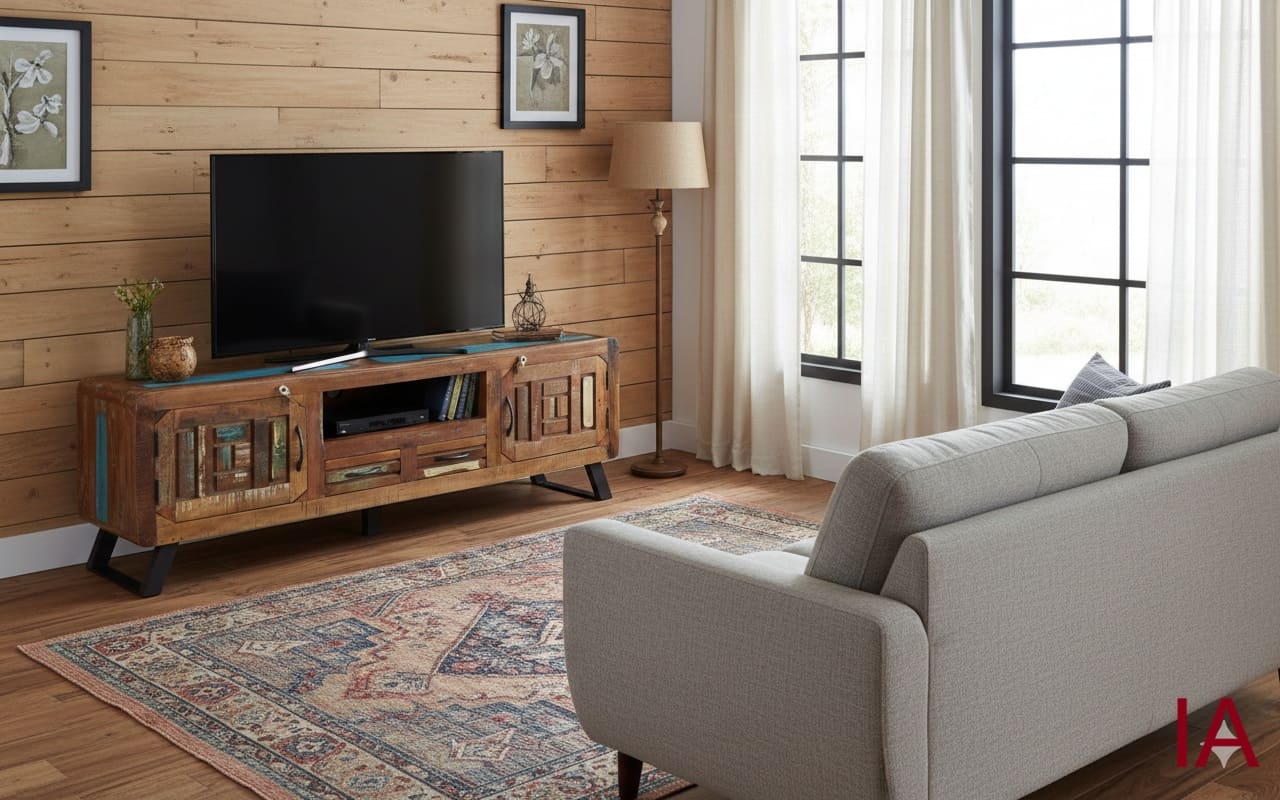 MUEBLE PARA TV BATUR (160 CM): MADERA MACIZA RECICLADA, ALMA VINTAGE Y ACABADO MULTICOLOR EXCLUSIVO. ¡EL TRONO QUE TU PANTALLA EXIGE PARA DESTACAR! 📺🎨✨