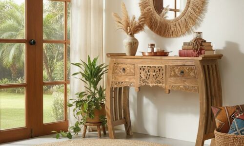 ¿Consolas aburridas y rectilíneas? La CONSOLA BUSUR es un desafío a lo convencional. Con su silueta dinámica y su talla artesanal, no solo decora tu entrada o salón, sino que se convierte en una INSTALACIÓN DE ARTE que te diferenciará de inmediato. ¡Si quieres sorprender, tienes que comprarla ya!