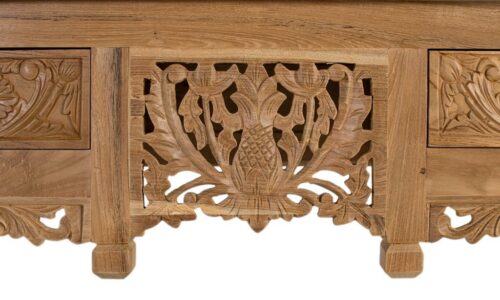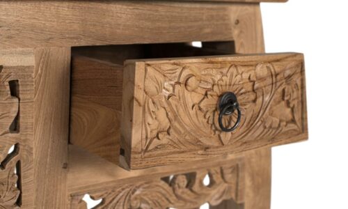 - 2 CAJONES FRONTALES TALLADOS A MANO: No solo son funcionales, son lienzos con delicados motivos florales que aportan una riqueza visual inigualable.