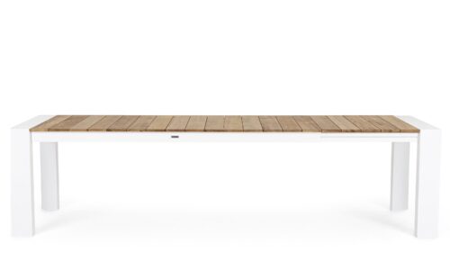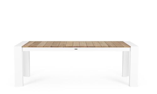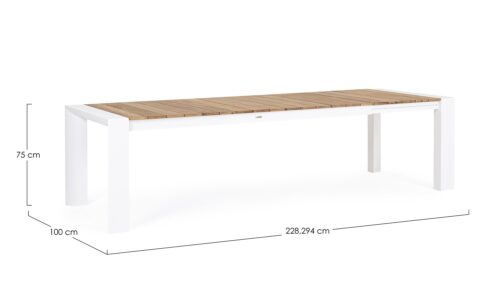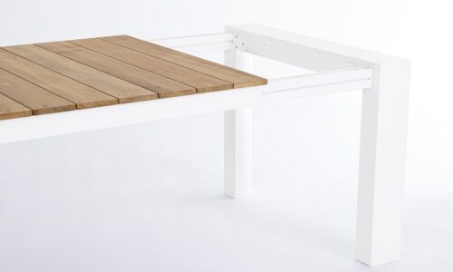 Camerón – Mesa para exterior de 228 (294) cm Blanco/Teca