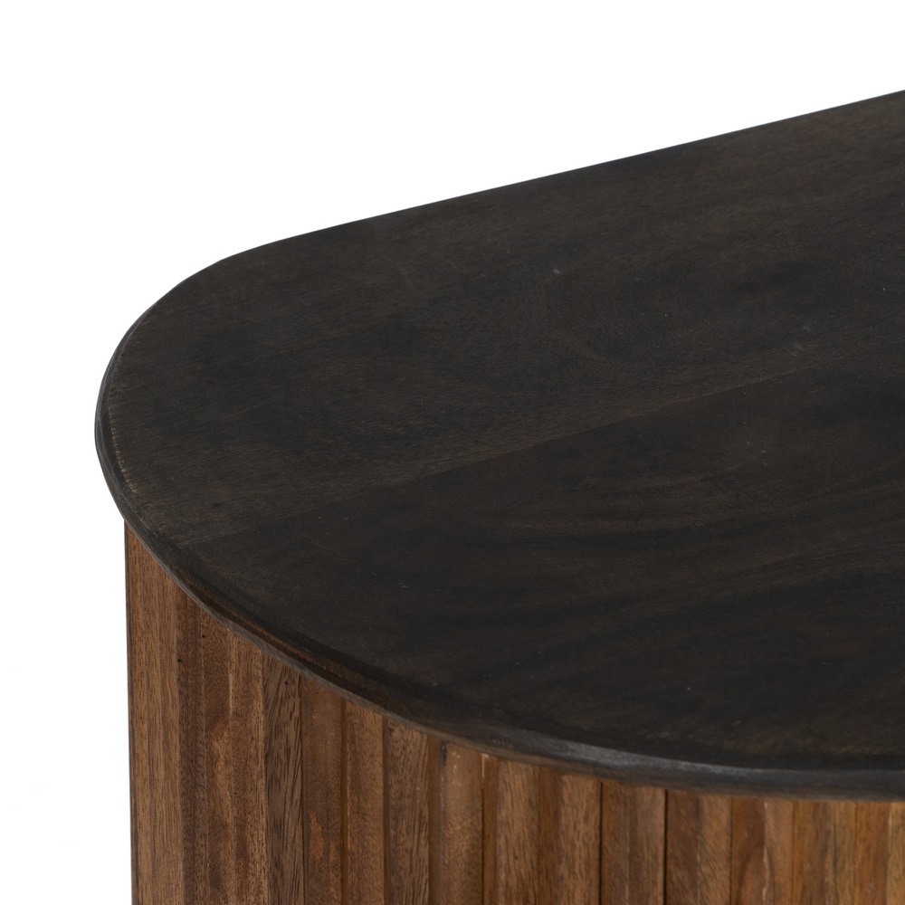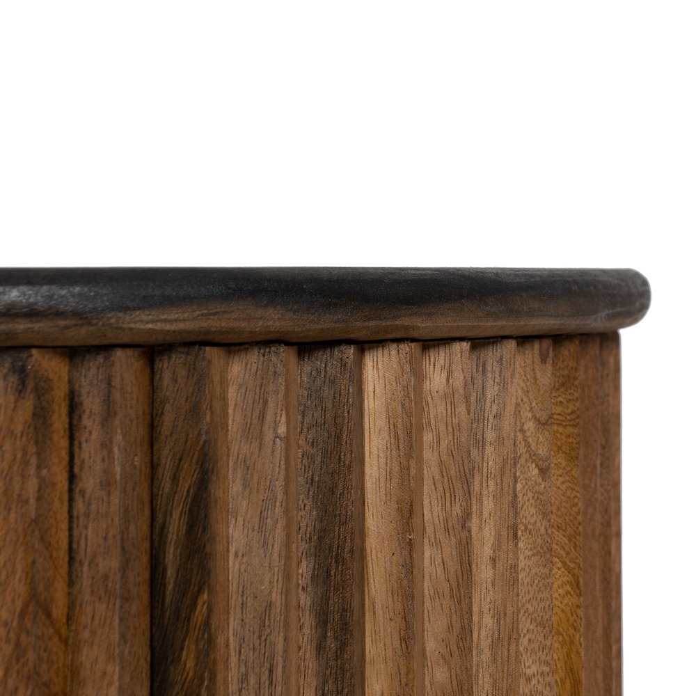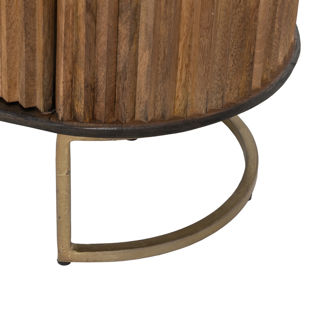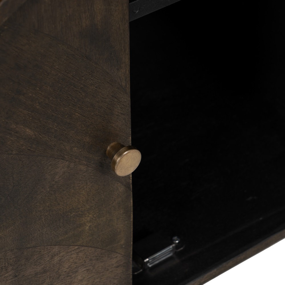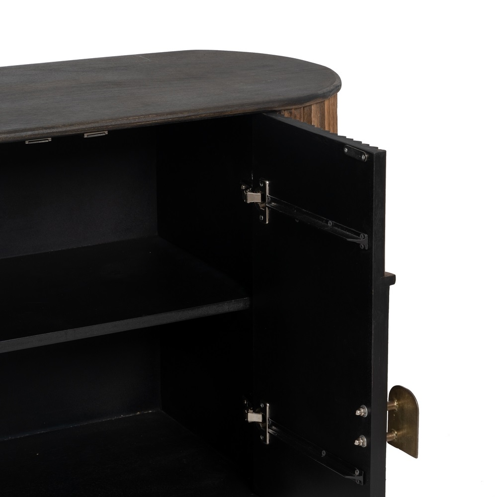 El aparador Chopta es una pieza artesanal de estilo colonial que se fusiona con tendencias naturales, y que hace que encaje fácilmente en la estancia escogida. Configurado con 4 puertas y con los costados curvados, con acabado bicolor, está fabricado con madera de mango, y con los píes metálicos acabado dorado.