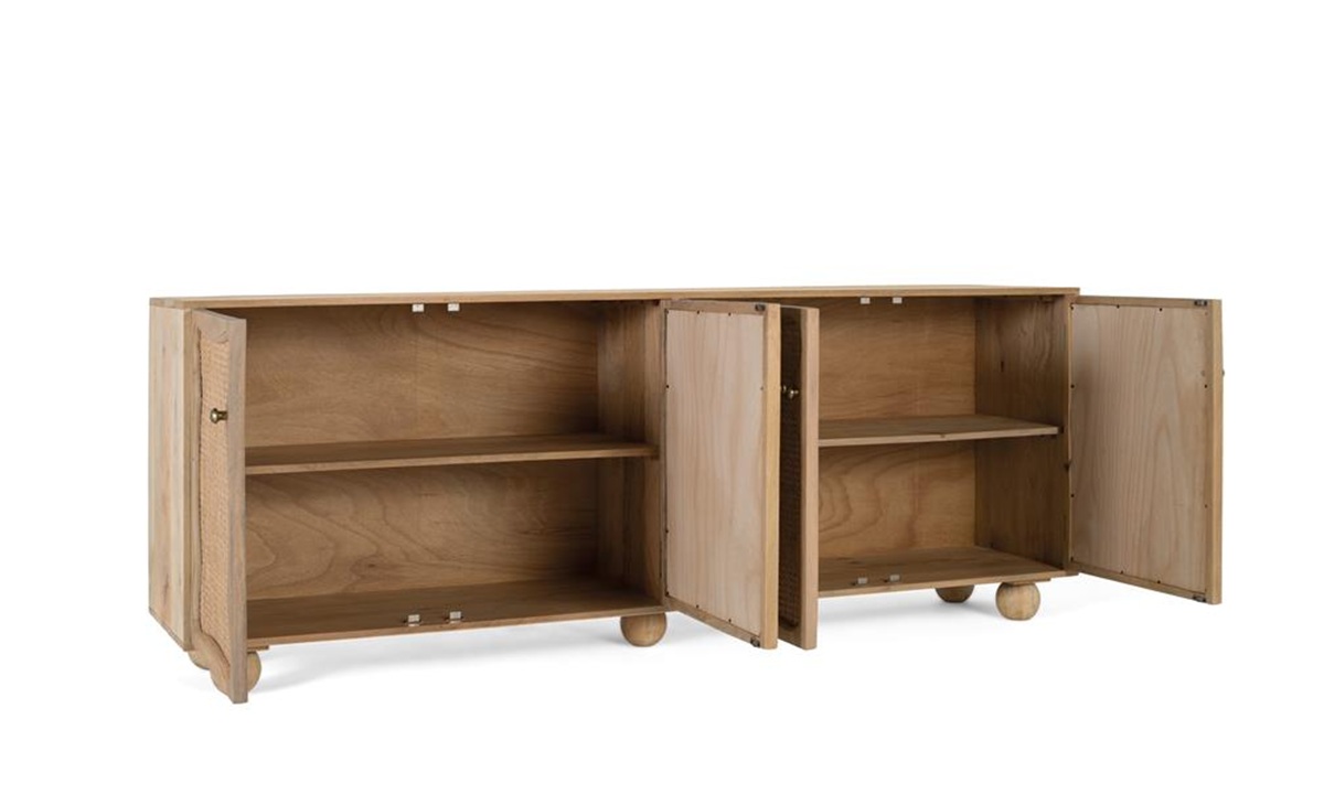 ALMACENAMIENTO GIGANTE: Sus cuatro puertas amplias ocultan baldas interiores que ofrecen un generoso espacio de almacenaje para todo: vajilla, textiles o electrónica.