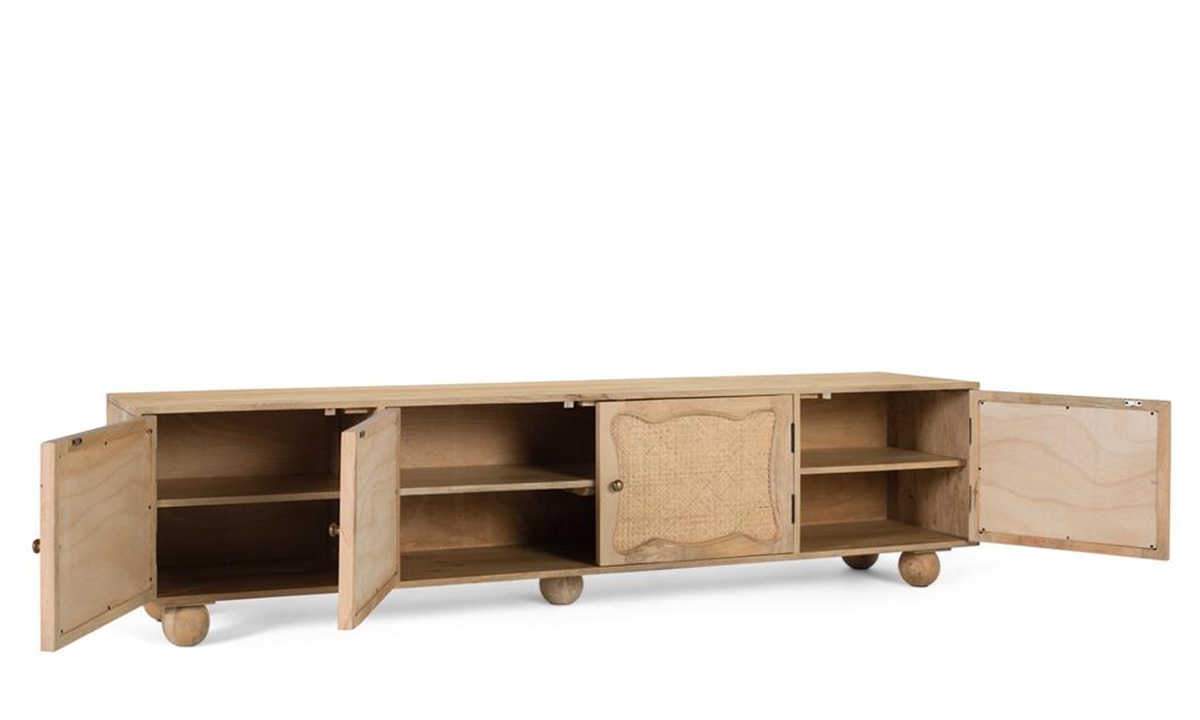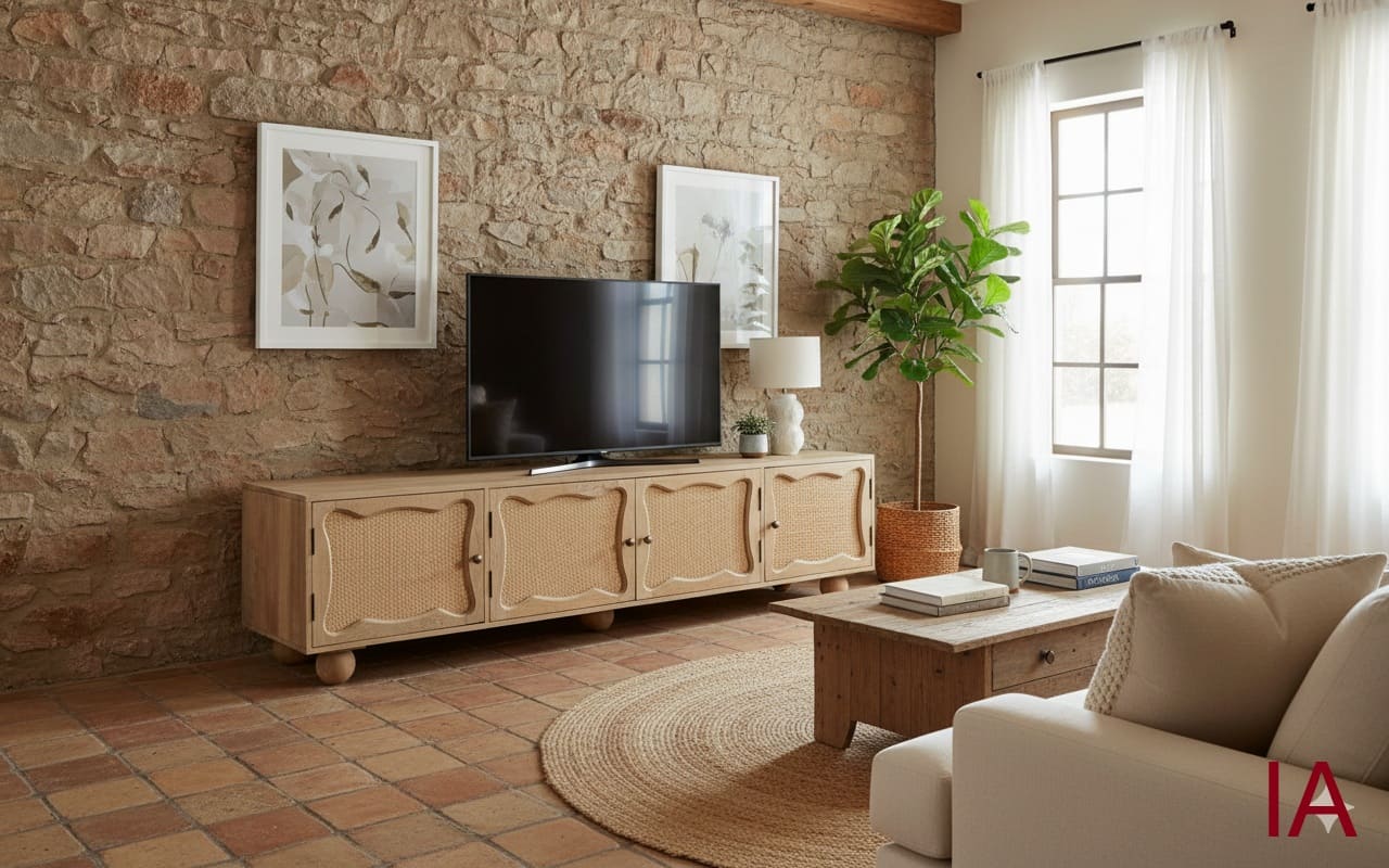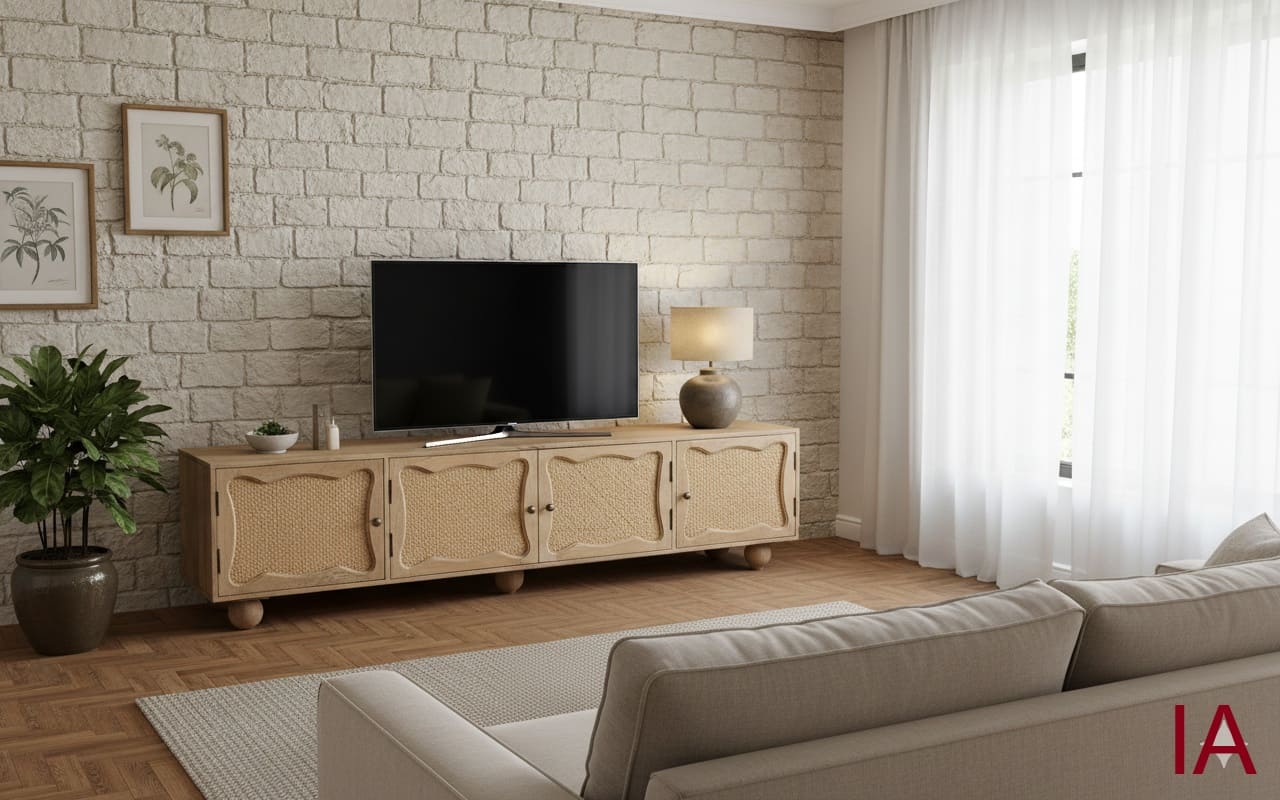 MUEBLE TV DANAU: MANGO MACIZO. REJILLA ORGÁNICA. ¡2 METROS DE ESTILO QUE SE VIRALIZA! 🥭📺