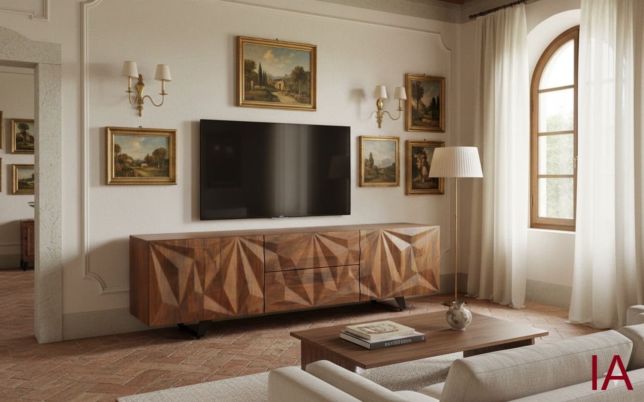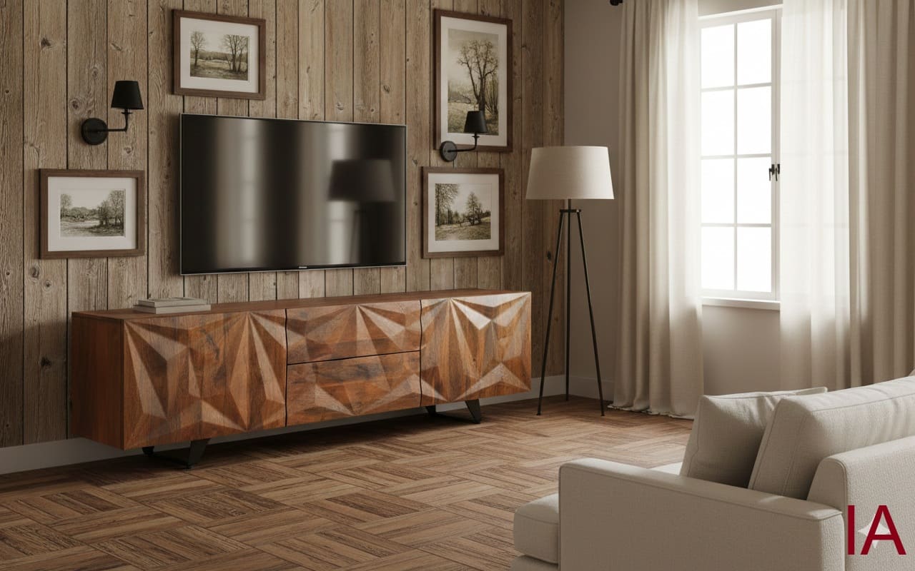 MUEBLE TV DHARMA: MANGO MACIZO. ESCULTURA 3D. ¡TU SALÓN SERÁ UN MUSEO! 📐🥭