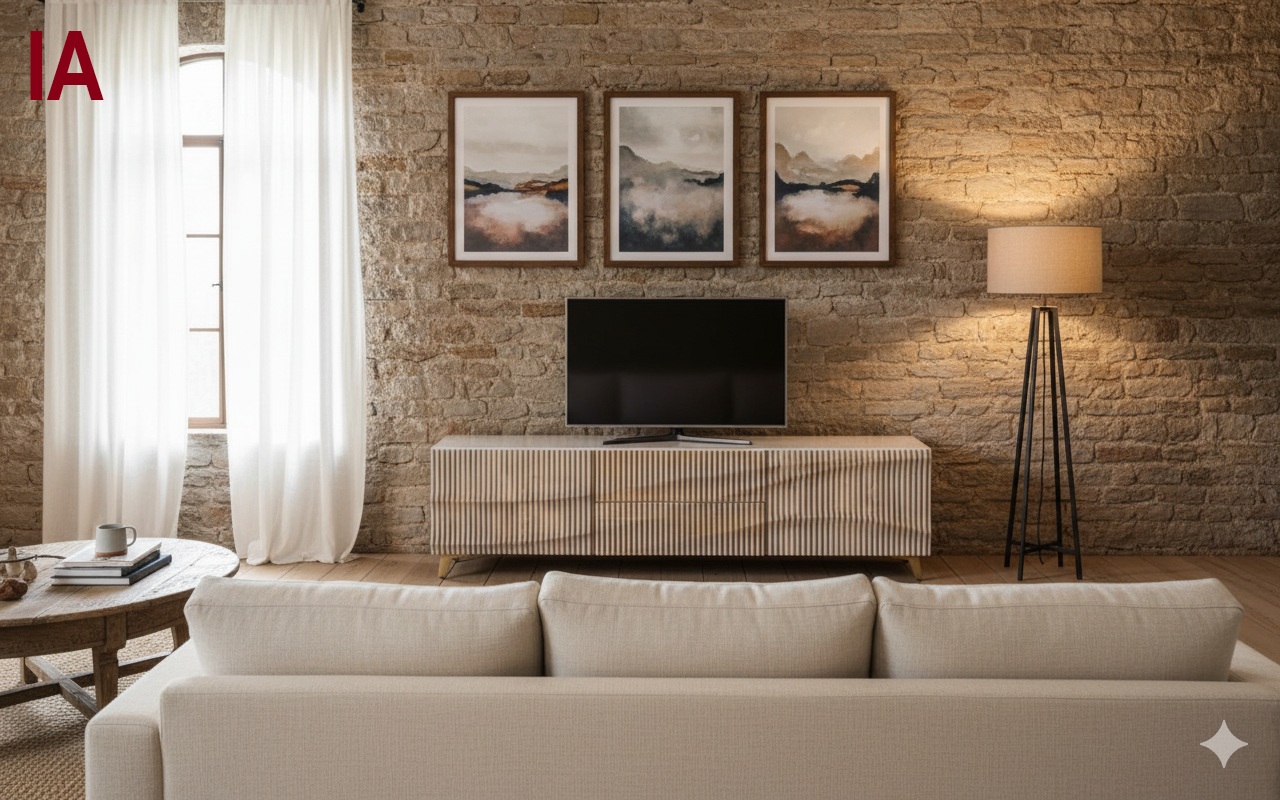 MUEBLE TV DHYANA: MANGO MACIZO. RELIEVE WAVE. ¡EL LUJO FLUIDO EN TU SALÓN! 🌊🤍