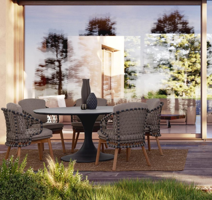 La silla de exterior EULARIA es la pieza perfecta para quienes buscan lujo, resistencia y diseño en su terraza o jardín. Su combinación de materiales nobles y su estilo contemporáneo hacen de esta silla mucho más que un asiento: es una declaración de sofisticación.