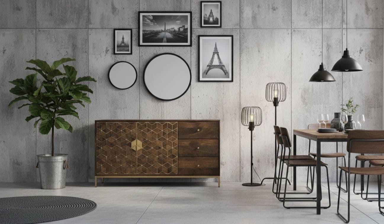 APARADOR KEN (145 CM): MADERA DE MANGO Y NOGAL. DISEÑO GEOMÉTRICO 3D. ¡LA PIEZA MAESTRA QUE HARÁ QUE TU SALÓN PAREZCA DE REVISTA! 🌰✨