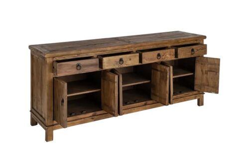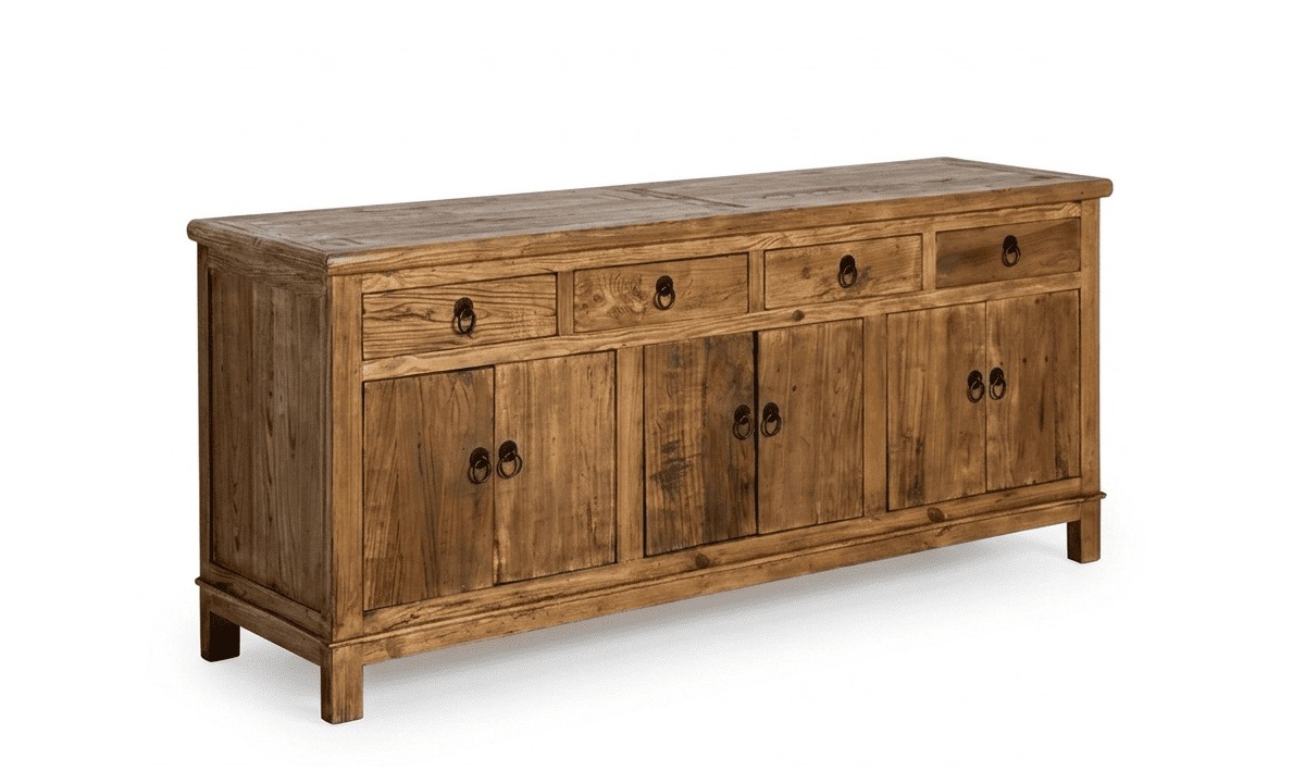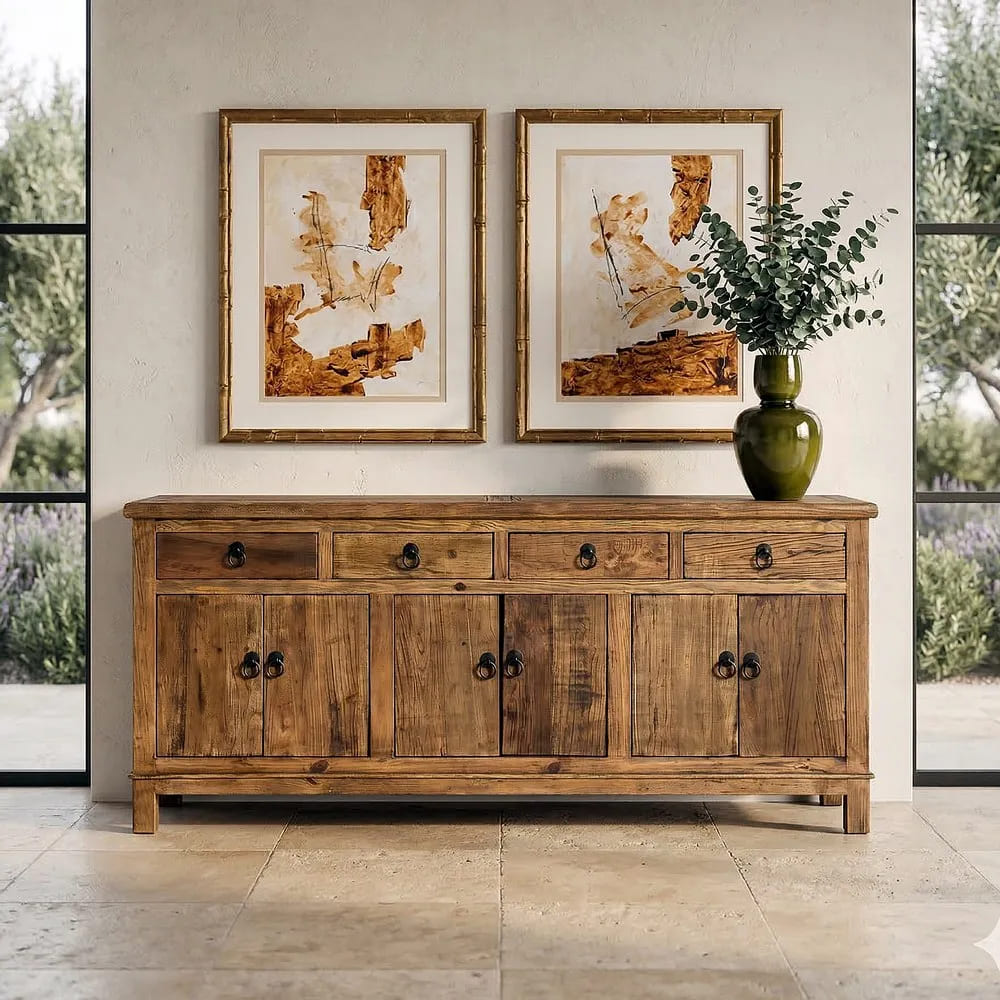 💥APARADOR KENARI: MADERA MACIZA RECICLADA, DISEÑO DE ALTA CAPACIDAD Y ACABADO MIEL CÁLIDO. ¡EL SÍMBOLO DE ESTATUS QUE TU CASA EXIGE PARA DESTACAR! 🌲✨🏛️