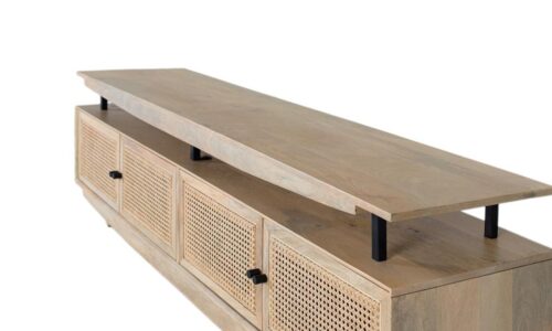 MUEBLE TV KISI: MANGO MACIZO. REJILLA NATURAL. ¡LA FUSIÓN BOHO-NÓRDICA PERFECTA! 🏖️📺