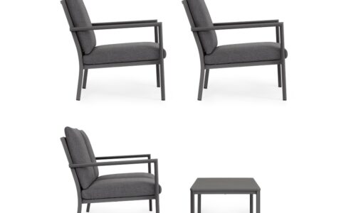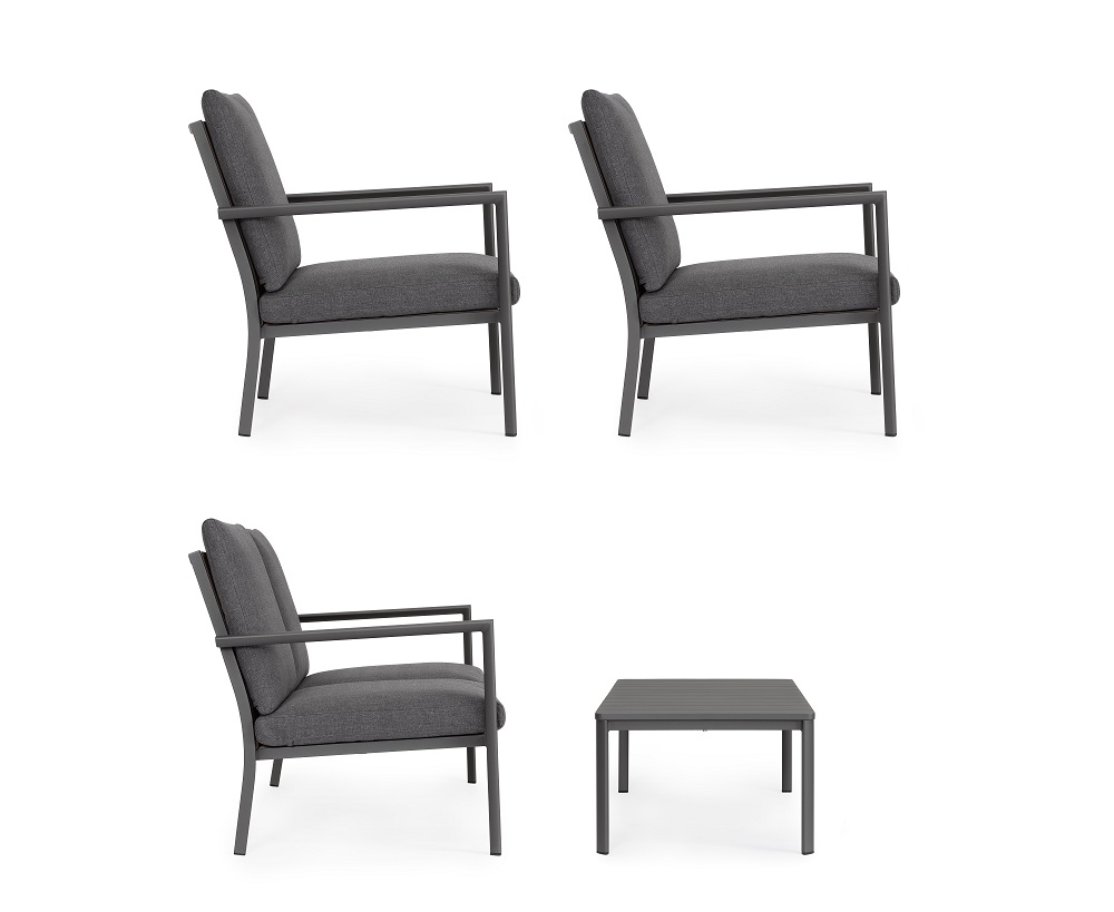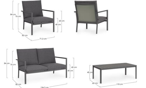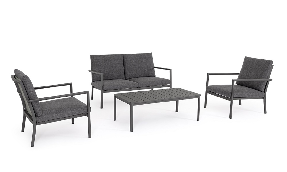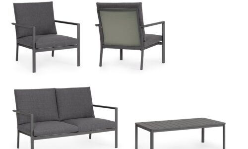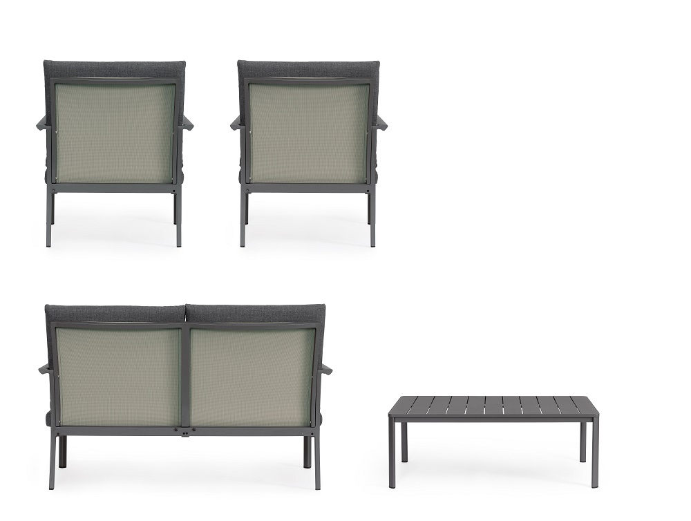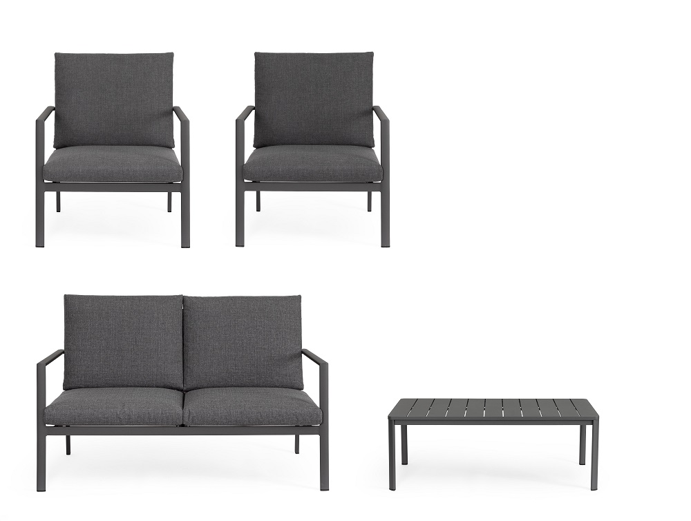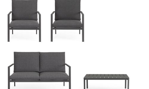 Conjunto para exterior Konnor – Antracita (1 sofá 2 plazas – 2 Sillones – 1 Mesa centro)