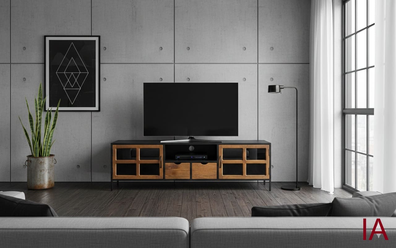 MUEBLE PARA TV LICIA (180 CM): HIERRO NEGRO Y MANGO MACIZO MIEL. ¡LA PIEZA MAESTRA QUE REVOLUCIONARÁ TU ENTRETENIMIENTO CON PURO CARÁCTER! 📺🦾✨