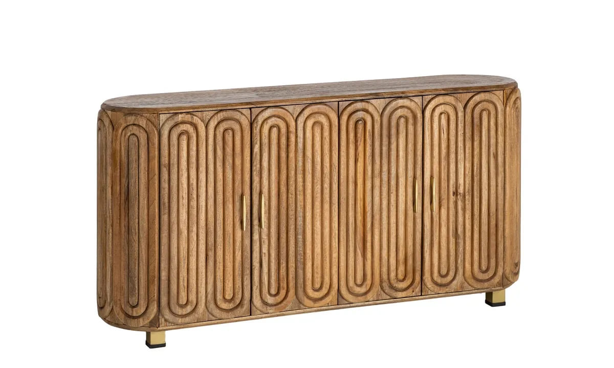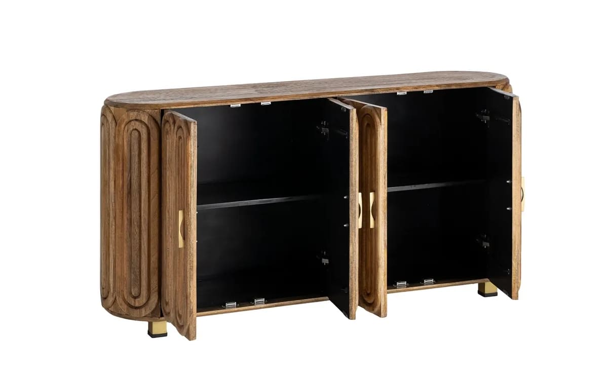 💥APARADOR LOTO (152 CM): MADERA MACIZA DE MANGO, DISEÑO ESCULTÓRICO TRIDIMENSIONAL Y ACABADOS EN DORADO. ¡EL SÍMBOLO DE ESTATUS QUE TU CASA EXIGE PARA DESTACAR! 🌳✨🏆