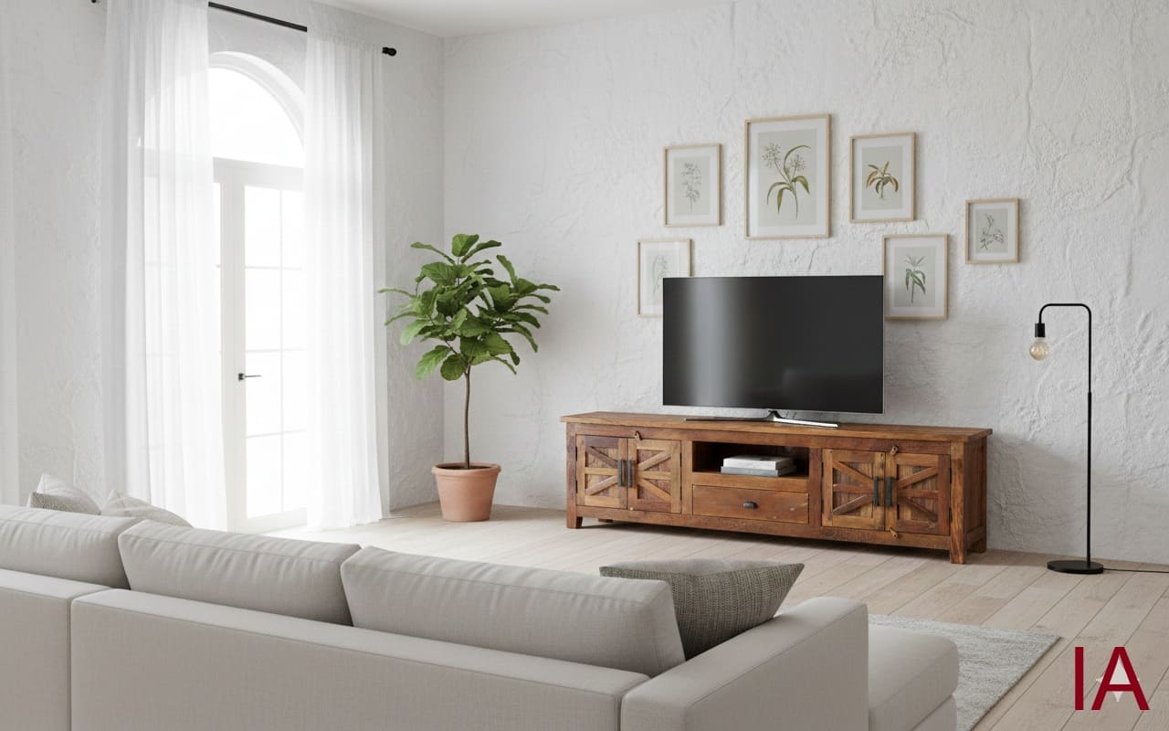 ¿Sigues conformándote con soportes para TV industriales, aburridos y sin alma? 🤯 Es hora de dar un golpe de AUTORIDAD DECORATIVA, SOLIDEZ RÚSTICA Y EXCLUSIVIDAD TOTAL. El MUEBLE TV LOVINA no es solo un soporte multimedia; es una PIEZA CON HISTORIA que fusiona la fuerza de la madera reciclada con un diseño de granero tradicional que irradia autenticidad en cada veta. Si buscas una pieza agresiva en dimensiones pero impecable en su distinción natural, ¡TIENES QUE ADQUIRIR ESTA JOYA AHORA MISMO!