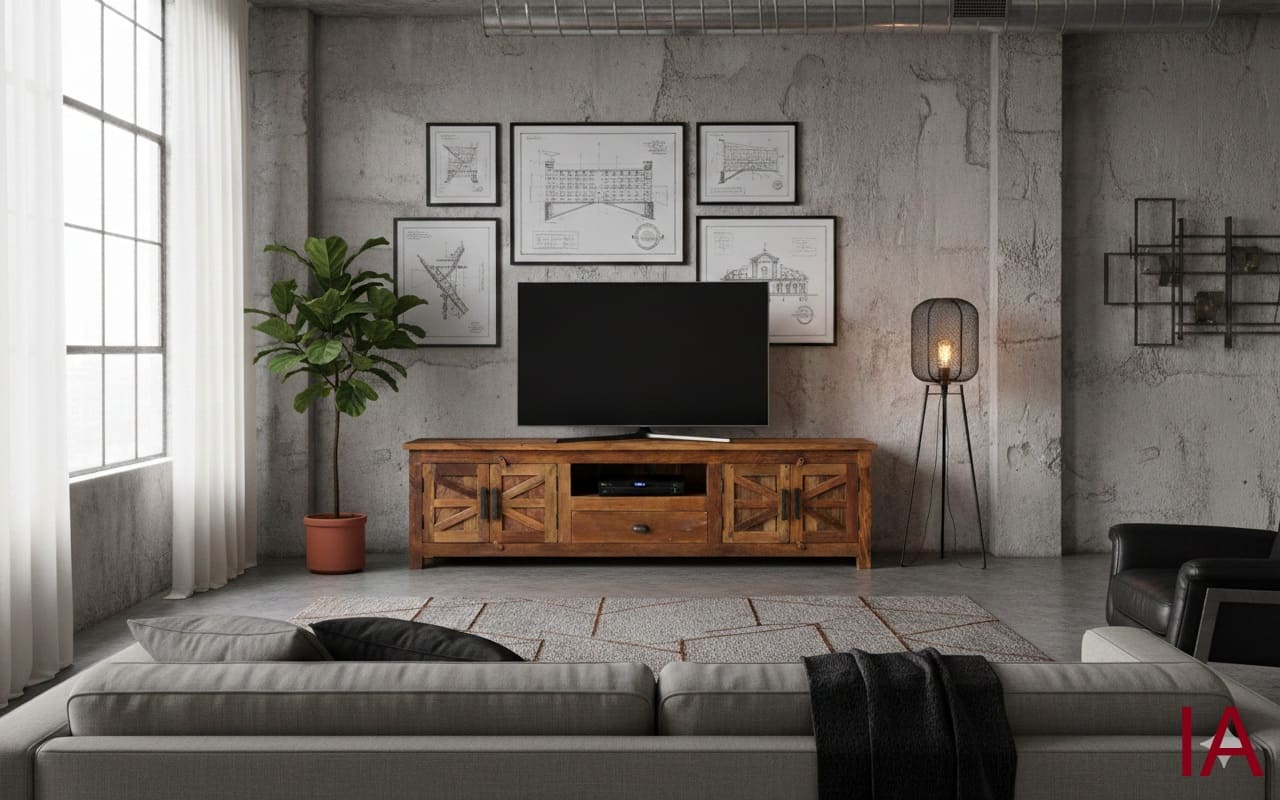 MUEBLE PARA TV LOVINA (220 CM): MADERA RECICLADA MACIZA, ALMA ARTESANAL Y ROBUSTEZ ABSOLUTA. ¡EL SÍMBOLO DE PODER QUE TU PANTALLA EXIGE! 📺🪵🛠️✨