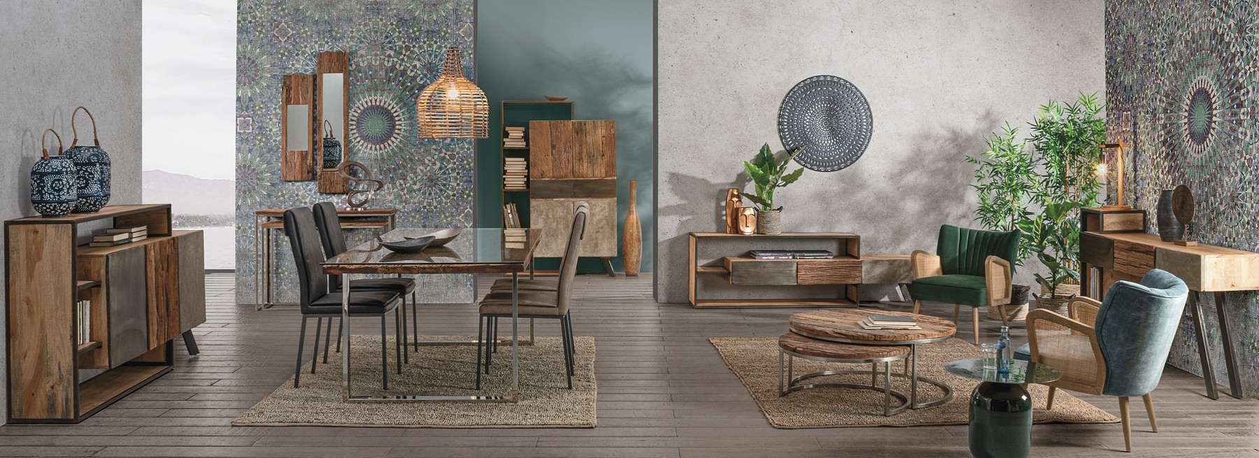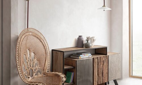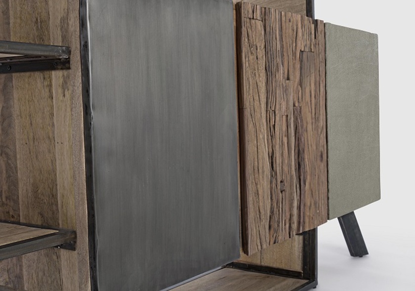 Cada puerta y panel cuenta una historia, aportando un toque artesanal y sostenible, mientras que la estructura en acero barnizado y el acabado acrílico protector garantizan resistencia, durabilidad y fácil mantenimiento.