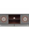 MÁNDALA TALLADO EN LA PUERTA: ⭕ ¡LA PECULIARIDAD ÚNICA! La puerta frontal está adornada con un MÁNDALA tallado artesanalmente. El acabado en AVELLANA con PATINADO BLANCO resalta la complejidad de la talla, creando una textura profunda y rica que atrae la mirada.