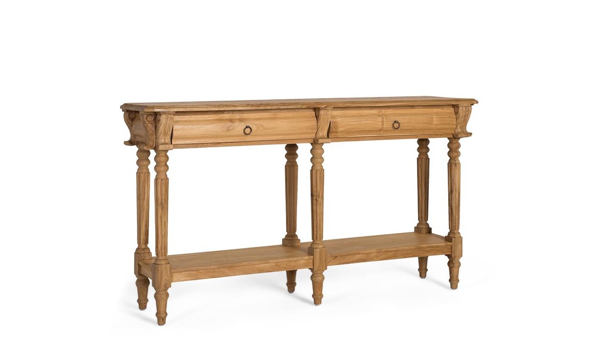📢 CONSOLA MEJA: TECA MACIZA TORNEADA. LUJO COLONIAL. ¡EL TRONO DE TU RECIBIDOR! 👑🌳
