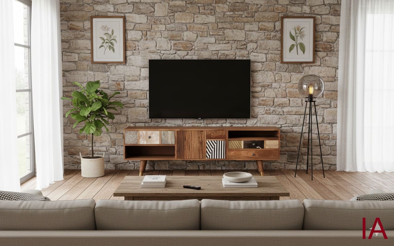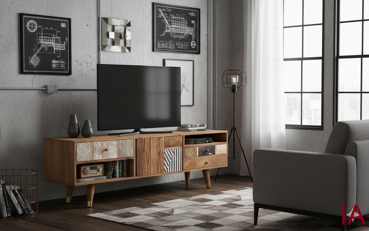 ¿Sigues conformándote con soportes para TV planos, industriales y sin alma? 🤯 ¡Es hora de un golpe de AUTORIDAD DECORATIVA, TRADICIÓN ARTESANAL Y SOFISTICACIÓN ABSOLUTA! El MUEBLE PARA TV MIKS no es solo un soporte; es una PIEZA DE COLECCIONISTA que fusiona la calidez del mango acabado en nogal claro con un mosaico salvaje de texturas y materiales nobles. Si buscas una pieza agresiva en personalidad y que emane éxito desde el primer vistazo, ¡TIENES QUE ADQUIRIR ESTA JOYA AHORA MISMO!