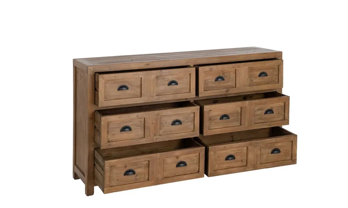 💥CÓMODA MIMET (160 CM): MADERA RECICLADA DE PINO, ACABADO MIEL CÁLIDO Y ALMA RÚSTICA SEÑORIAL. ¡EL SÍMBOLO DE ESTATUS QUE TU CASA EXIGE PARA DESTACAR! 🌲✨🏛️