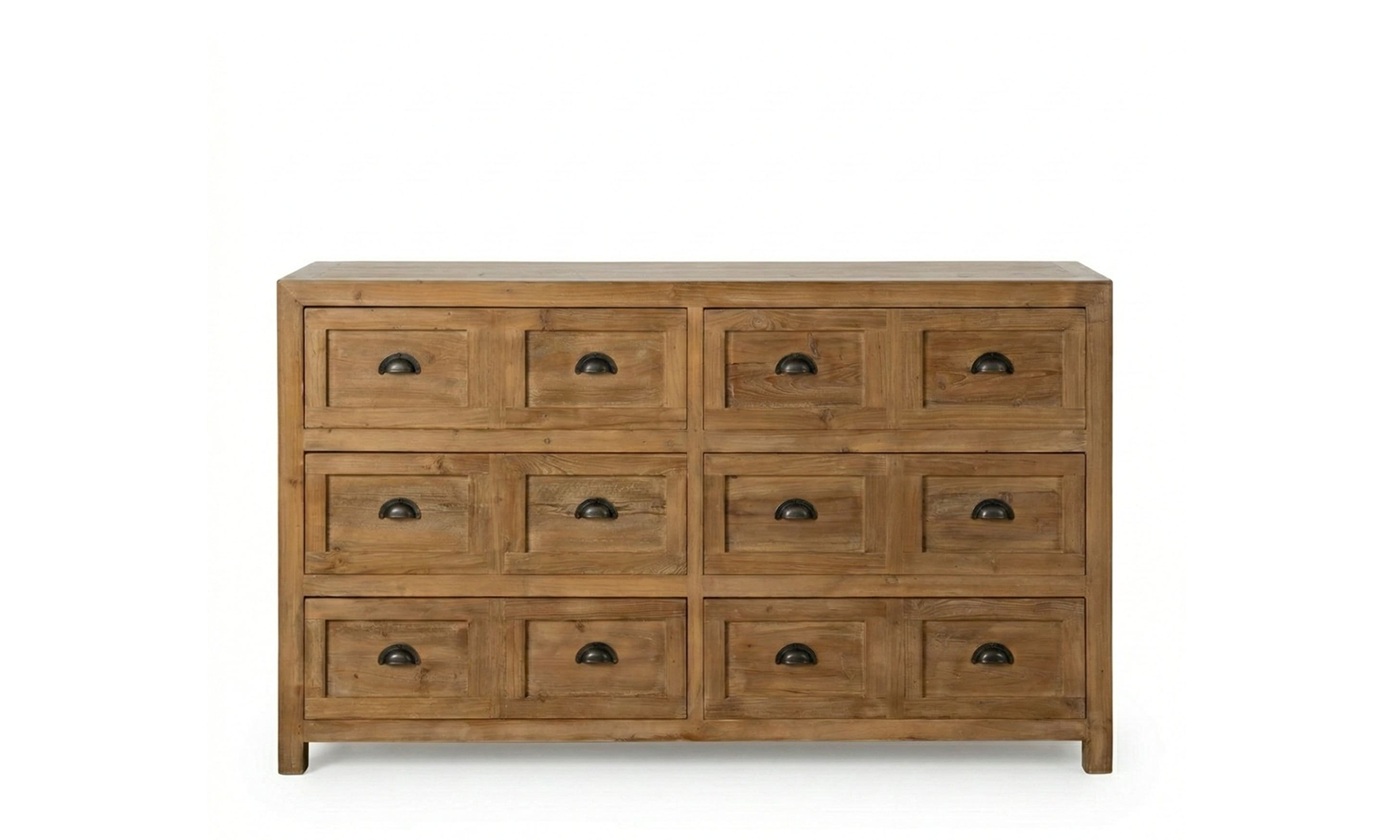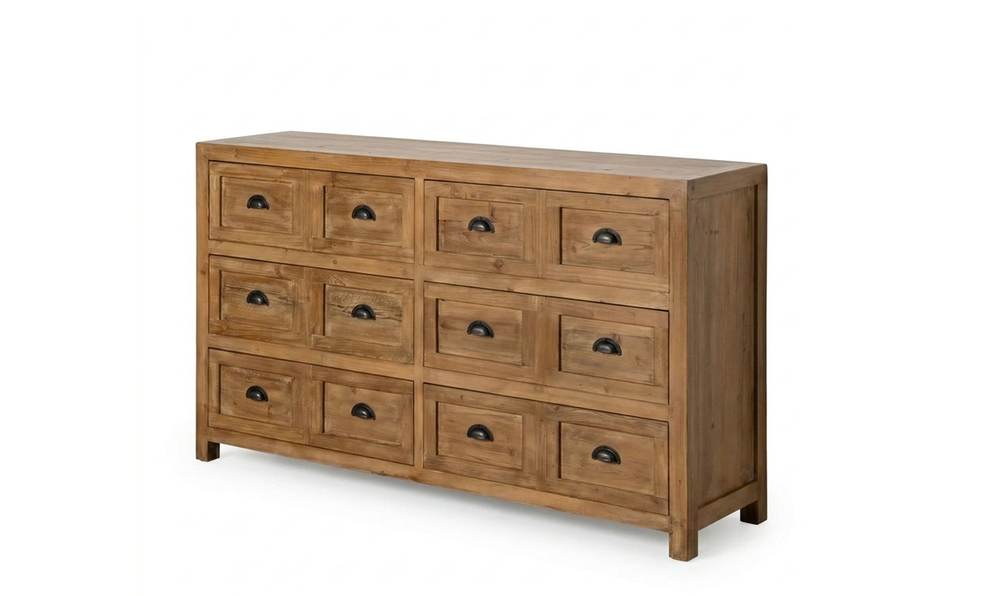 ¿Sigues conformándote con cajoneras industriales planas, endebles y aburridas? 🤯 Es hora de dar un golpe de AUTORIDAD DECORATIVA Y EXCLUSIVIDAD ABSOLUTA. La CÓMODA MIMET no es solo un mueble de almacenamiento; es una PIEZA MONUMENTAL que fusiona la nobleza de la madera de pino reciclada con una robustez visual que captura todas las miradas. Si buscas una pieza que destile distinción, solidez y un aire de palacio rústico irresistible, ¡TIENES QUE HACERTE CON ELLA AHORA MISMO!