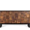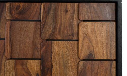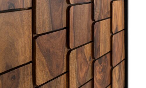 - Frente Escultórico: Cuatro puertas frontales en madera de sheesham con un diseño 3D de piezas en relieve 🧱. Un efecto texturizado que captura la luz y añade una profundidad visual fascinante.