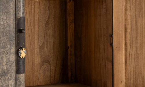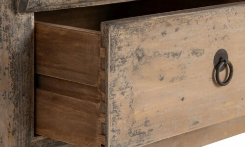 DETALLES DE CARÁCTER: 🔘 Equipado con tiradores metálicos en acabado tipo óxido envejecido y un sistema de cierre rústico que refuerza su identidad artesanal.