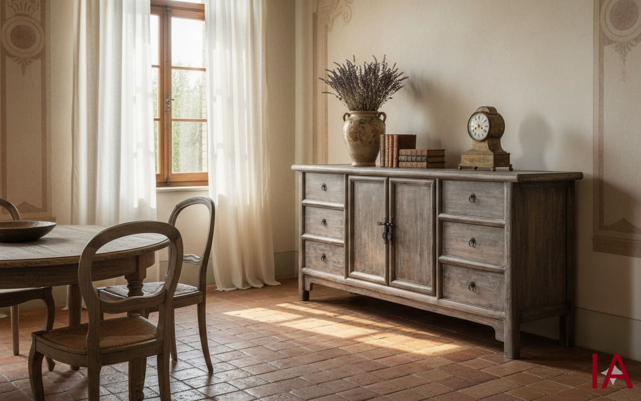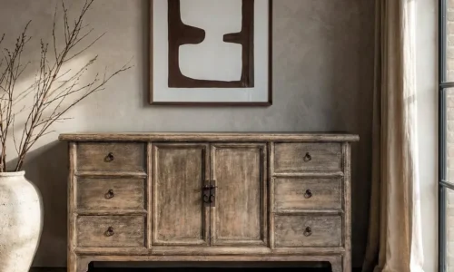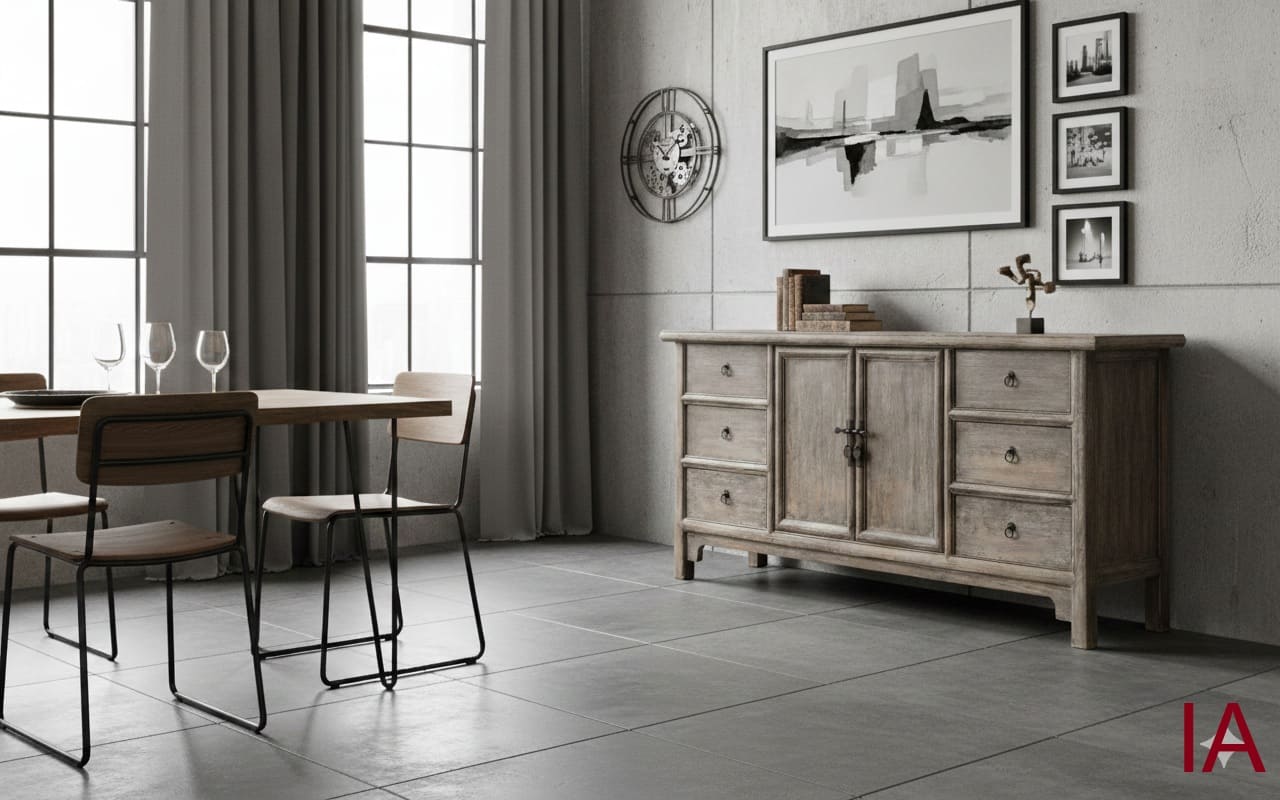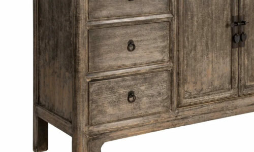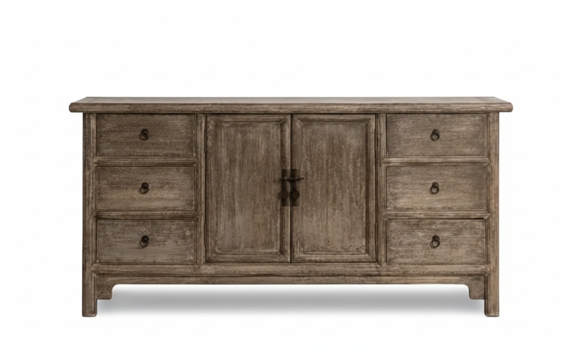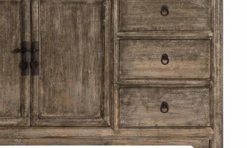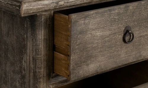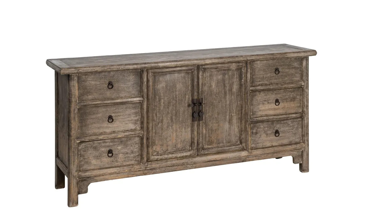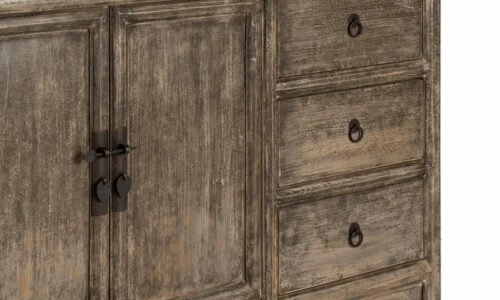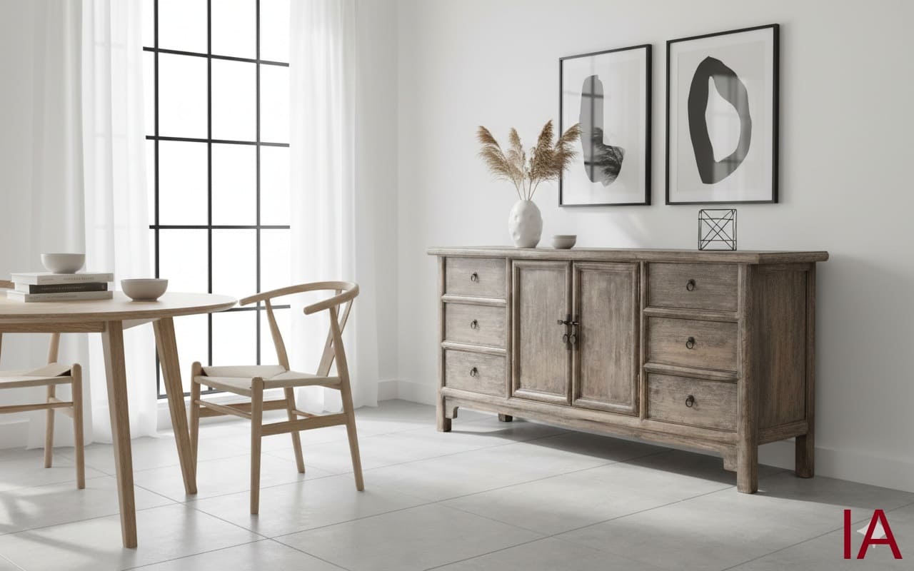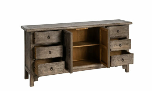 ACABADO ENVEJECIDO: 🐚 Su tratamiento desgastado resalta la textura orgánica y las marcas naturales de la madera, convirtiendo cada aparador en una pieza única e irrepetible.