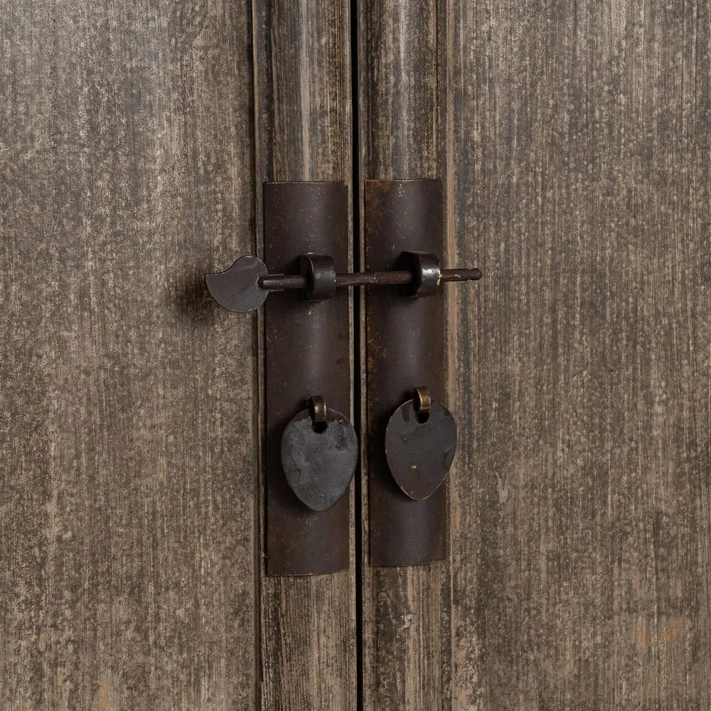 DETALLES DE CARÁCTER: 🔘 Equipado con tiradores metálicos en acabado tipo óxido envejecido y un sistema de cierre central rústico que refuerza su identidad artesanal.