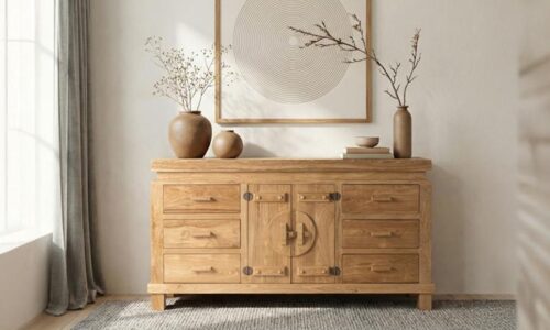 El APARADOR NARA es la inversión más inteligente. Combina la belleza ancestral de la teca y los cierres de madera con la funcionalidad premium (seis cajones con guías telescópicas). Si buscas un mueble que sea una escultura atemporal, que eleve tu espacio con modernidad y elegancia exótica, ¡el NARA es el golpe de efecto que tu hogar NECESITA! 🏆