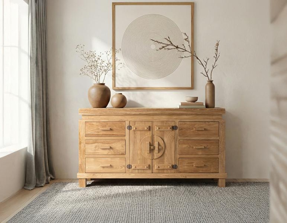 APARADOR NARA: TECA MACIZA. 6 CAJONES DE LUJO. ¡LA INVERSIÓN EN ESTILO IMPERIAL! 🏯👑