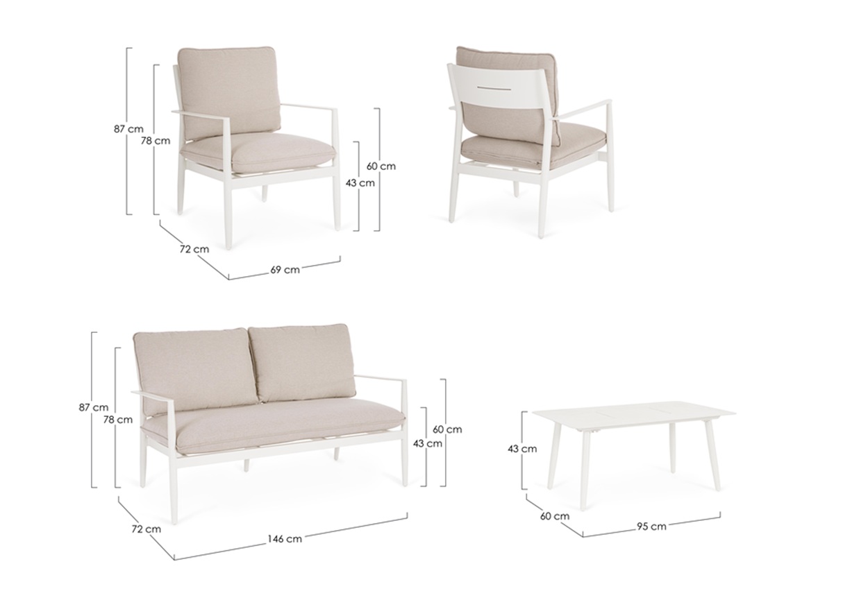 ✅ 1 Sofá de 2 plazas: 146 cm ancho x 87 cm alto x 72 cm fondo.