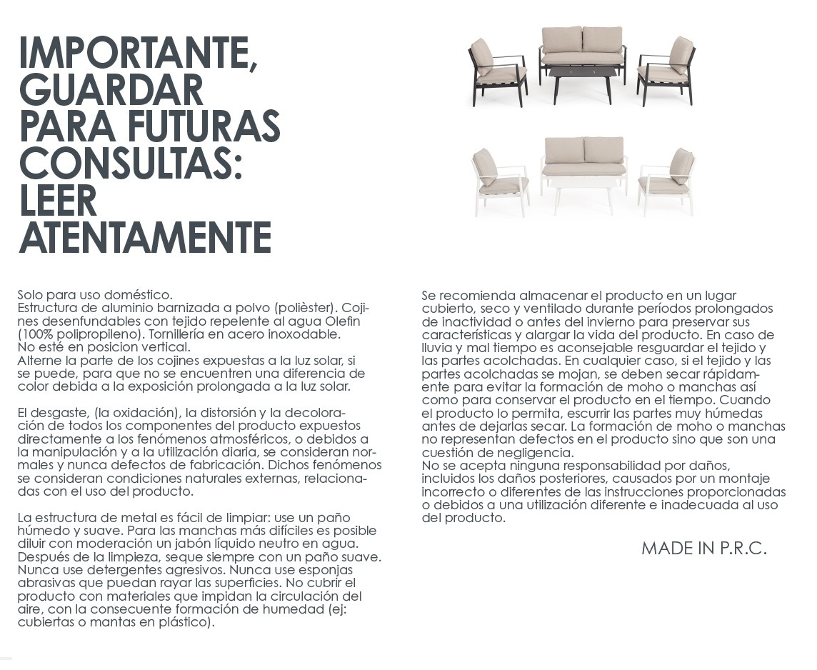 Porque no es solo un juego de muebles: es una experiencia de exterior premium, creada para resistir al paso del tiempo y aportar un toque moderno y sofisticado a tu hogar.