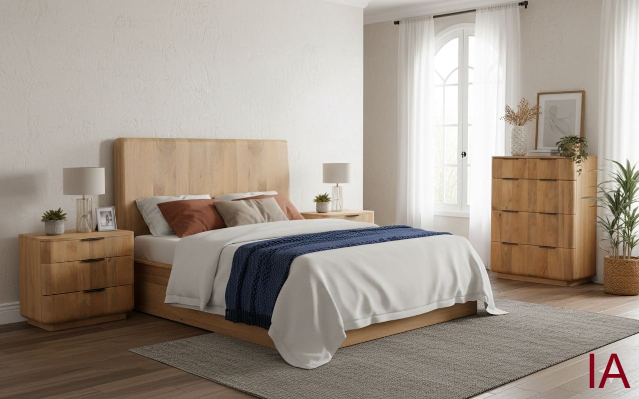 CONJUNTO DE DORMITORIO NERJA: MADERA MACIZA DE MANGO, DISEÑO ORGÁNICO DE VANGUARDIA Y ACABADO NATURAL. ¡EL SÍMBOLO DE ESTATUS Y LUJO QUE TU ESPACIO PERSONAL EXIGE! 🛌🪵✨📐