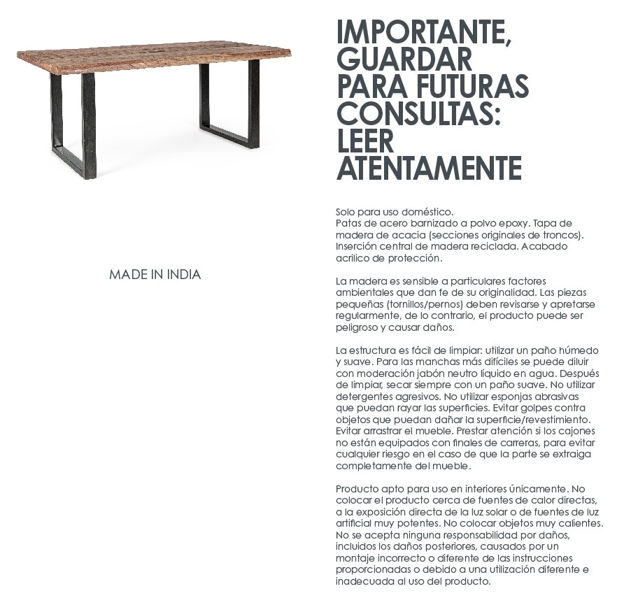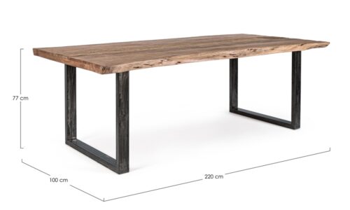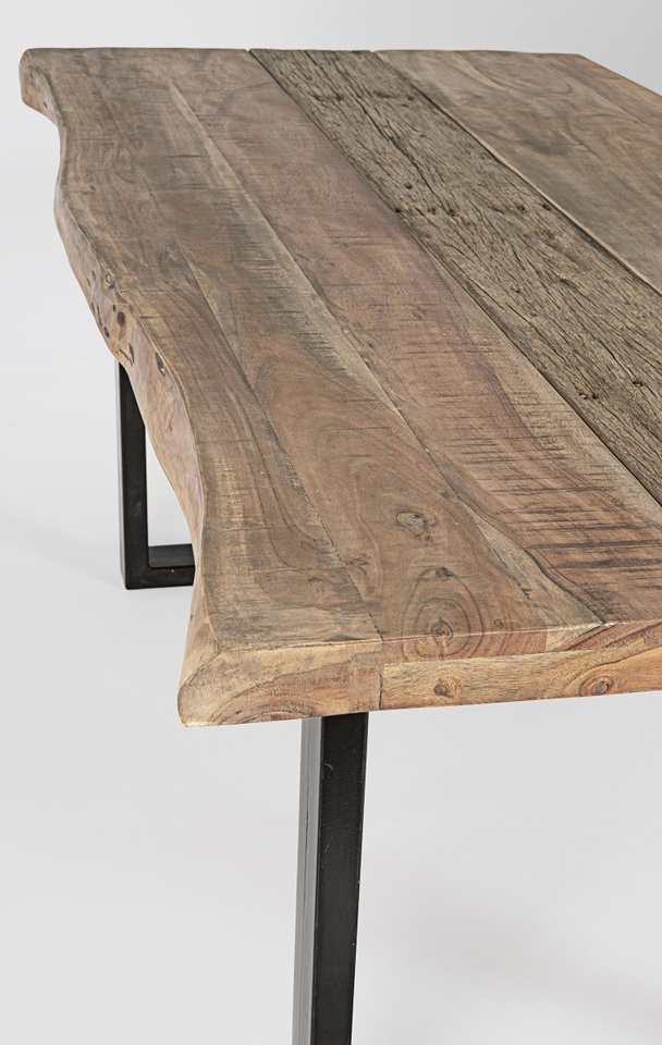 Convierte tu comedor en un auténtico escaparate de diseño y exclusividad con esta mesa de comedor artesanal que combina la fuerza del acero y la calidez de la madera maciza de acacia.