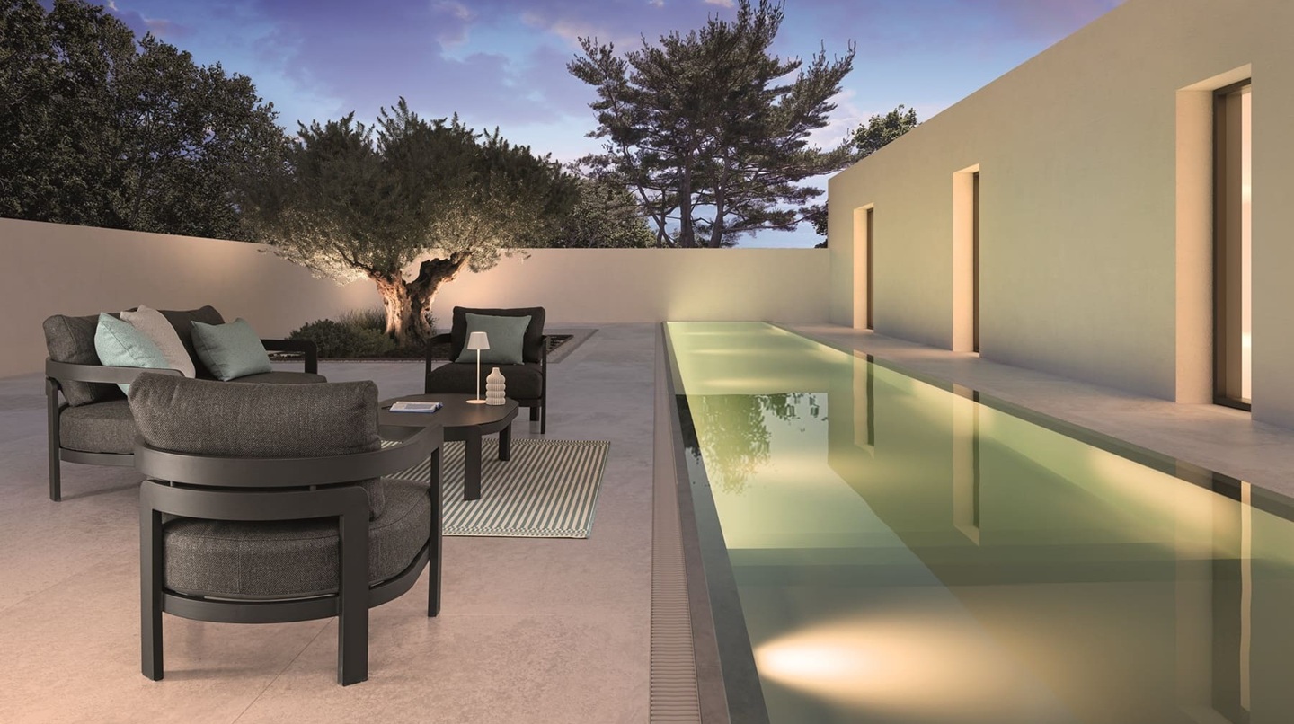 Está concebido para resistir el sol, la humedad y el uso continuado, manteniendo siempre su estética impecable y garantizando elegancia y comodidad día tras día.