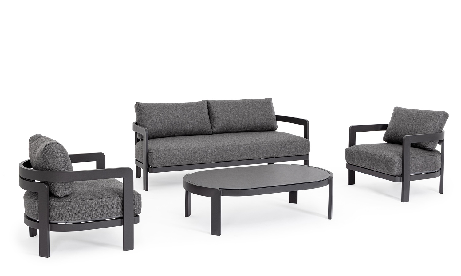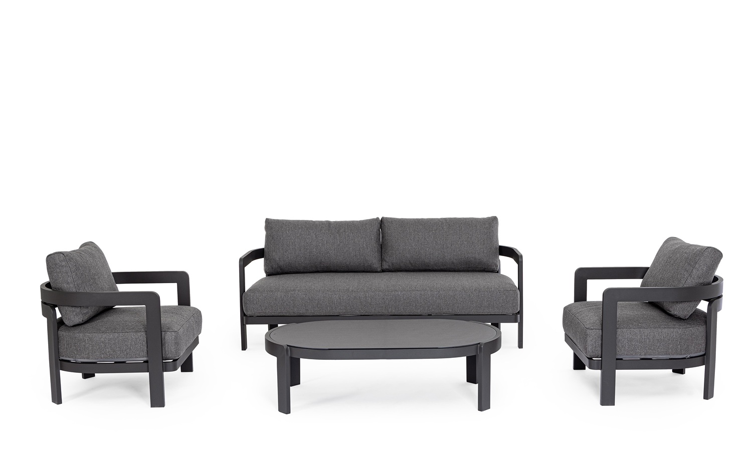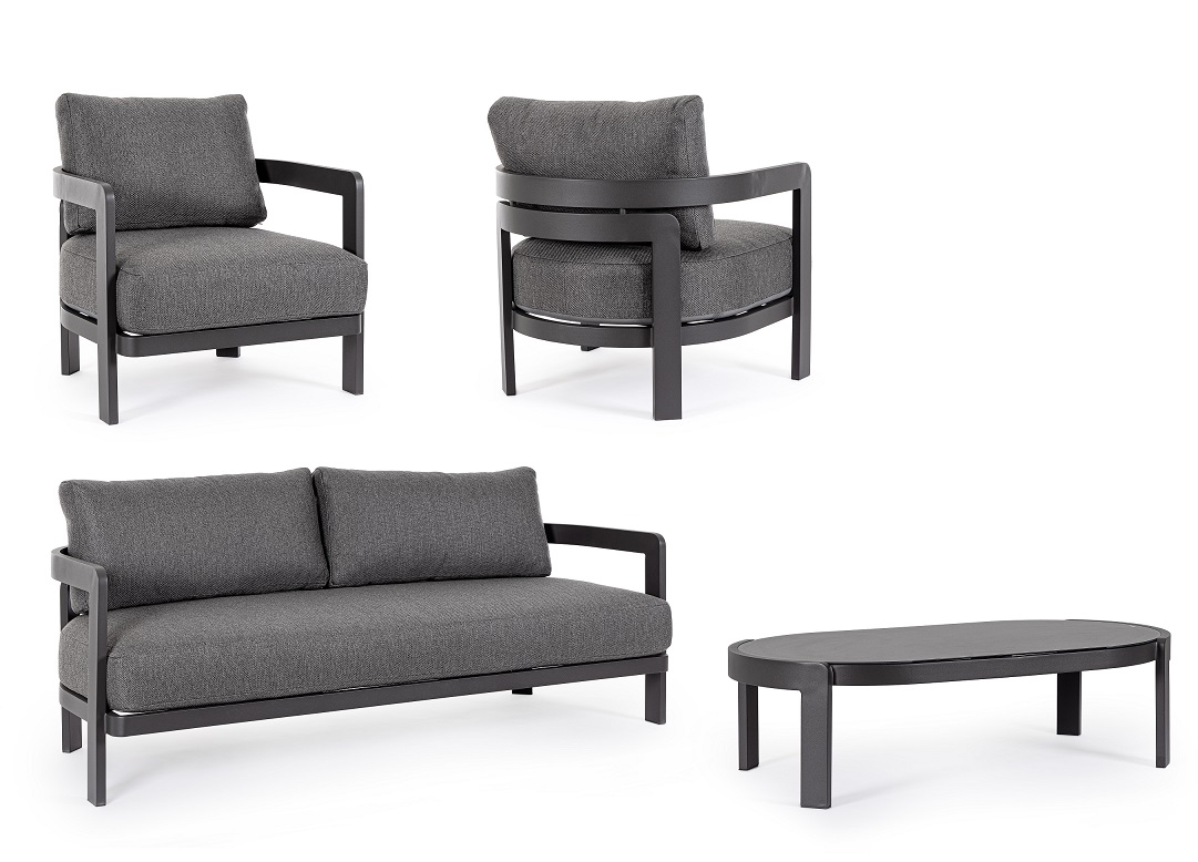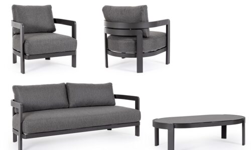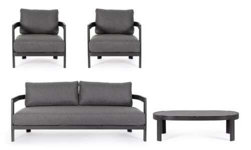 Conjunto para exterior Presley – Antracita (1 sofá 3 plazas – 2 Sillones – 1 Mesa centro)