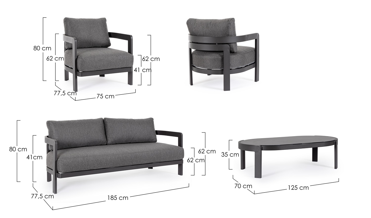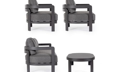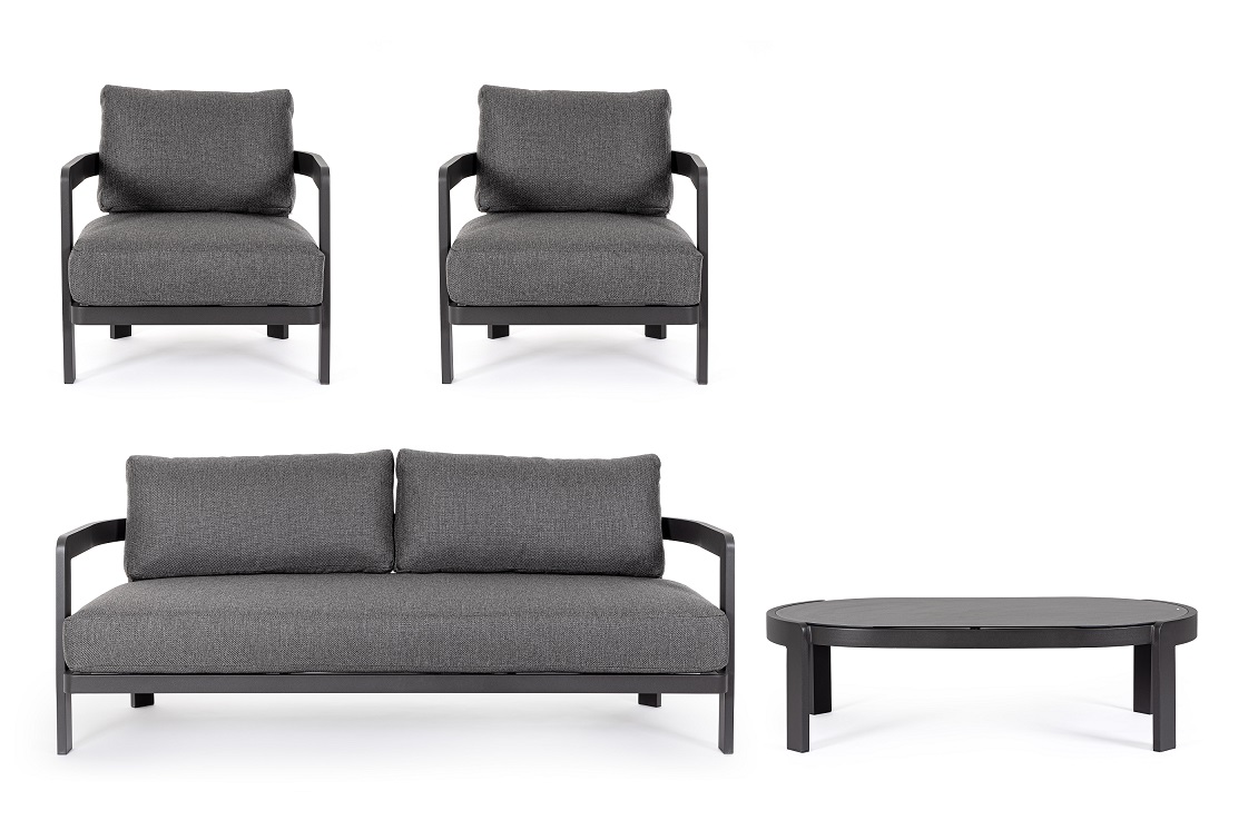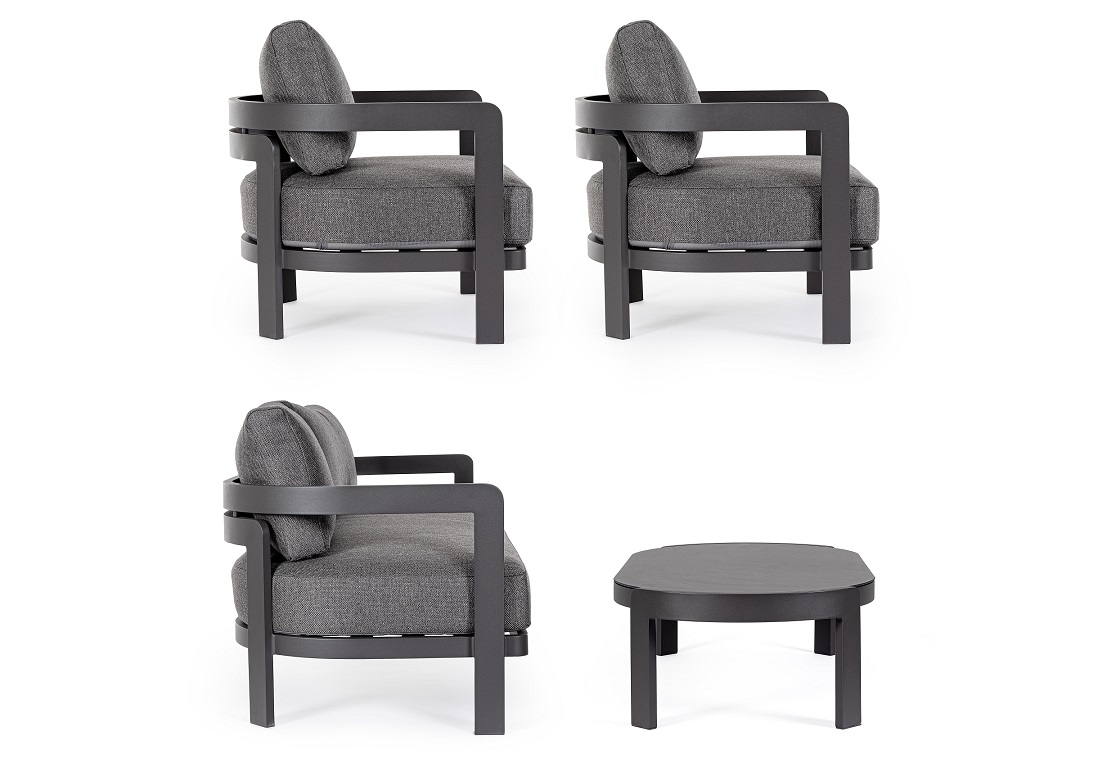 Conjunto para exterior Presley – Antracita (1 sofá 3 plazas – 2 Sillones – 1 Mesa centro)