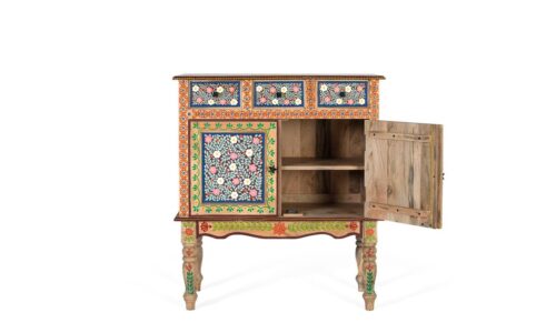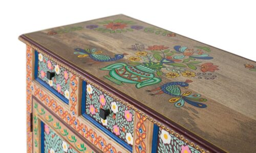 - DECORACIÓN ARTESANAL PINTADA A MANO: ✍️ ¡ATENCIÓN! Cada milímetro de este taquillón es un lienzo. Con MOTIVOS FLORALES VIBRANTES inspirados en la India, esta pieza es IRREPETIBLE. Deja de comprar muebles en serie y hazte con algo que cuenta una historia. ¡Es arte funcional!