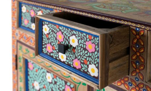 ¿Tu decoración es predecible? ¡Eso se acabó! El TAQUILLÓN RAJPUR no es un mueble; es una PIEZA DE COLECCIONISTA que inyectará una explosión de color, historia y artesanía inigualable en tu hogar. Si buscas exclusividad, acabas de encontrarla.