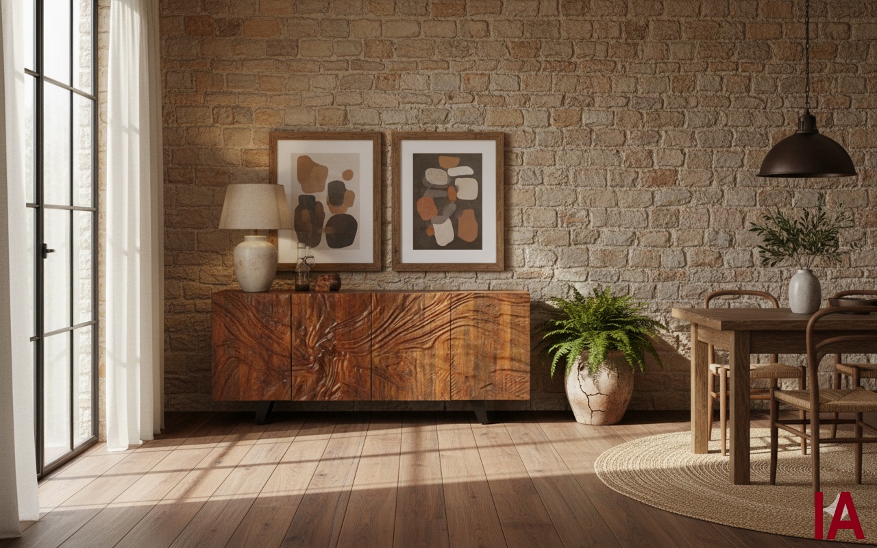 APARADOR RAM: MANGO MACIZO. RELIEVE ORGÁNICO. ¡EL ARTE DE LA NATURALEZA EN TU SALÓN! 🌳🌊